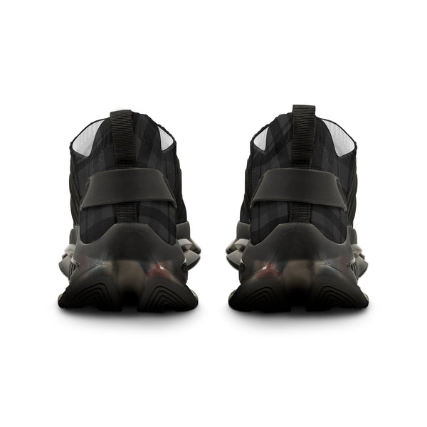 Check out these best classic black plaid print men's mesh sneakers that can provide extra height and comfort to your every day fashion and gym look. Hit the gym, outdoor track or the road in style with our mesh sneakers for men. These designer best men's mesh-knit best sports shoes come with black detailing as well as a supremely comfy and thick foam sole that over time adjust to your feet's unique contours for enhanced comfort and height. The soft sole, made with TPU and EVA materials, along with the mesh construction deliver high breathability that is excellent for sports. We offer sizes from US size 5-12 for men of various shoe sizes. All men's mesh sports sneakers footwear shoes are made-to-order and 100% brand new and we ship internationally worldwide to most countries.