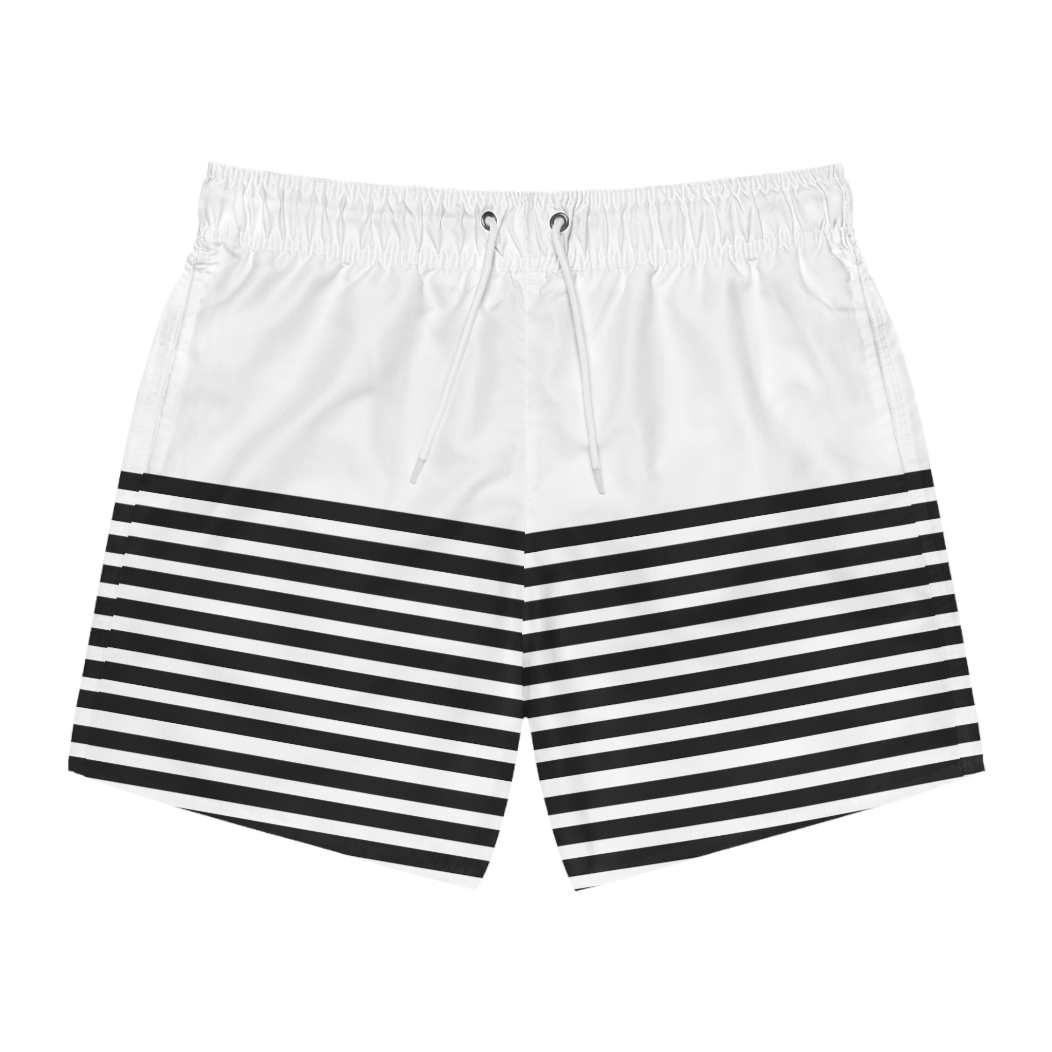 Black White Striped Men's Swimwear, Horizontally Striped Print Men's Swim Trunks For Men (US Size: XS-3XL)