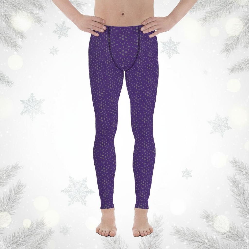 Purple Dotted Men's Leggings, Dots Pattern Designer Running Compression Tights For Men - Made in USA/EU/MX