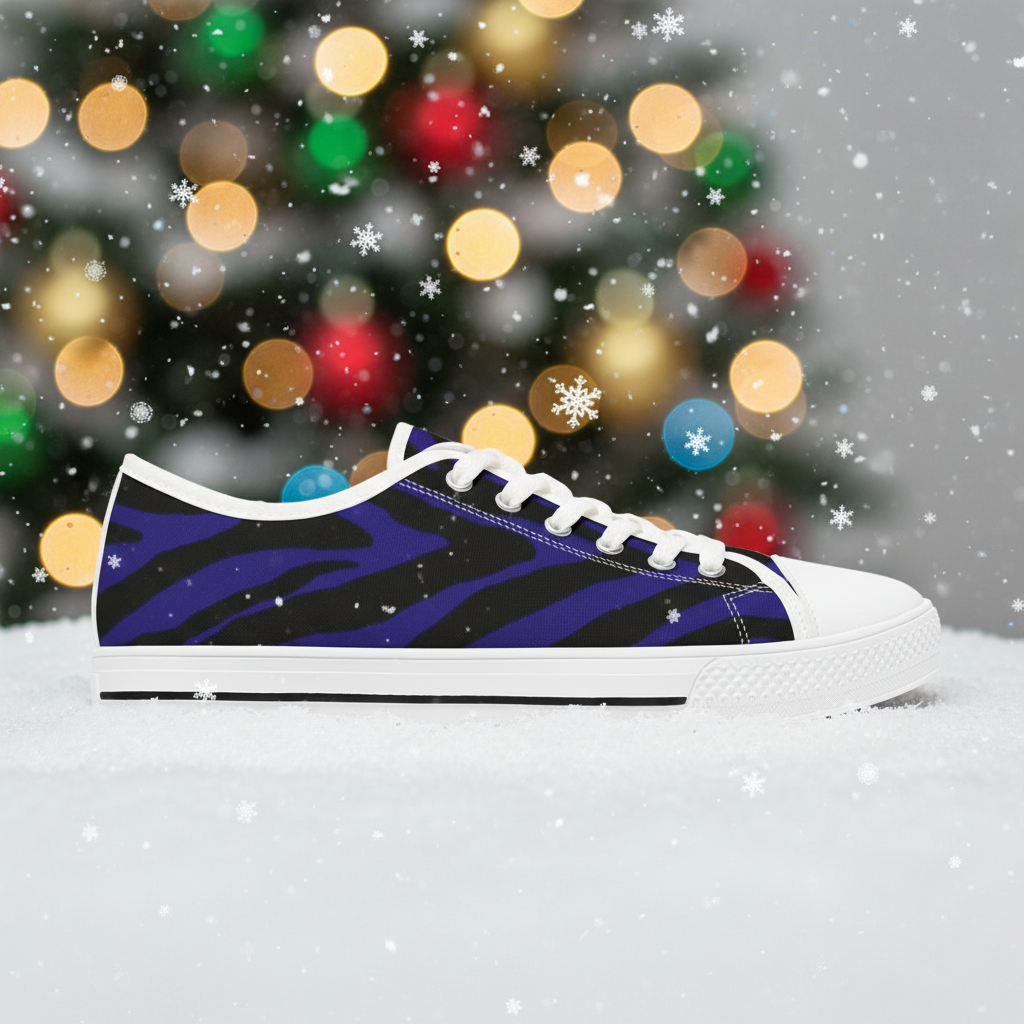 Are you looking for a pair of dark purple and black zebra striped animal print designer women's low tops? Check out these dark purple and black zebra stripes animal print designer low top women's designer sneakers for ladies. Made with breathable polyester canvas and featuring hi-poly deodorant memory foam insoles, these designer women's low top sneakers bear all the marks of an awesome shoe. Choose between black or white sole and laces, and enjoy the silver metal eyelets along with the lace-up closure. Made to order, brand new women's low top designer best fashion canvas sneakers, and we can ship worldwide internationally to most countries just for you.