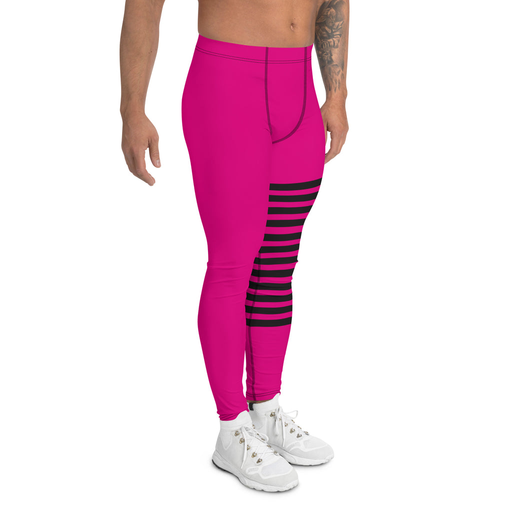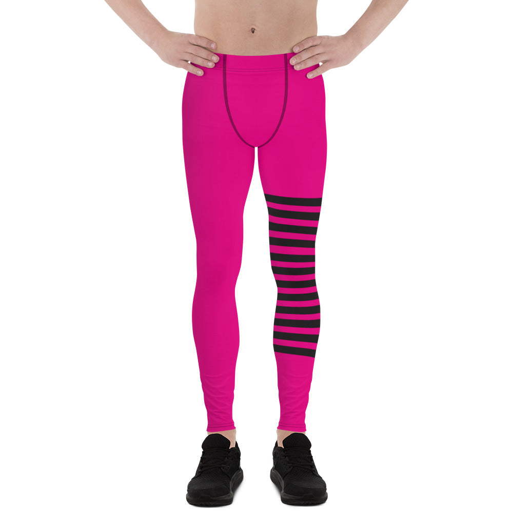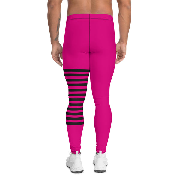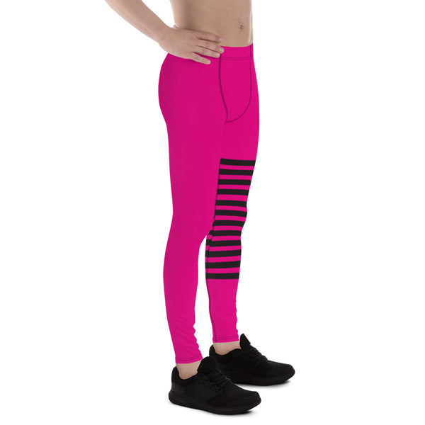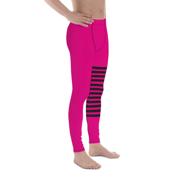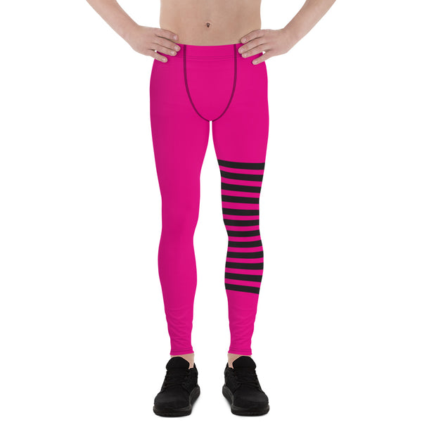 Hot Pink Striped Meggings, Black Pink Horizontally Stripes Men's Leggings