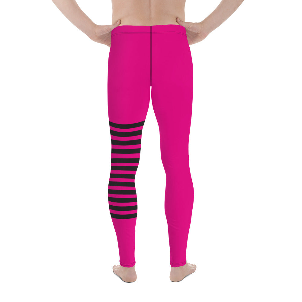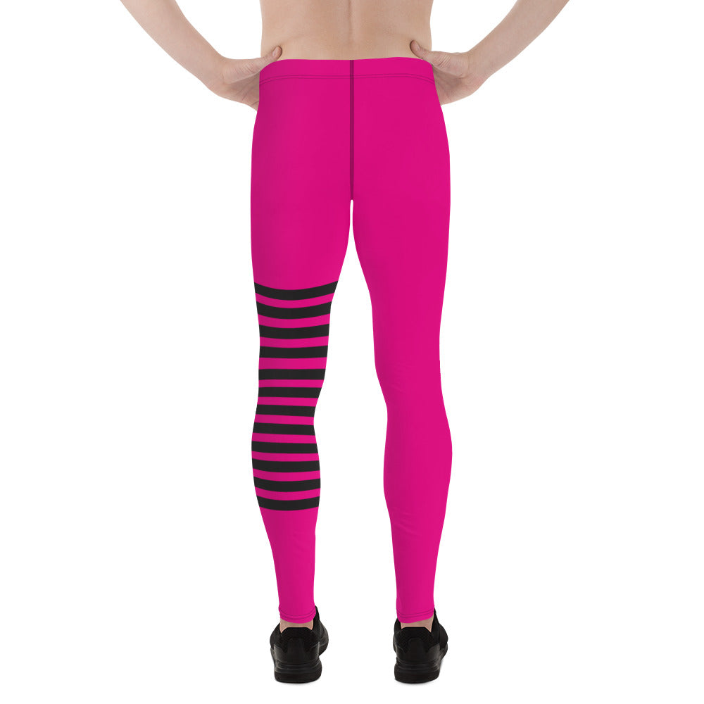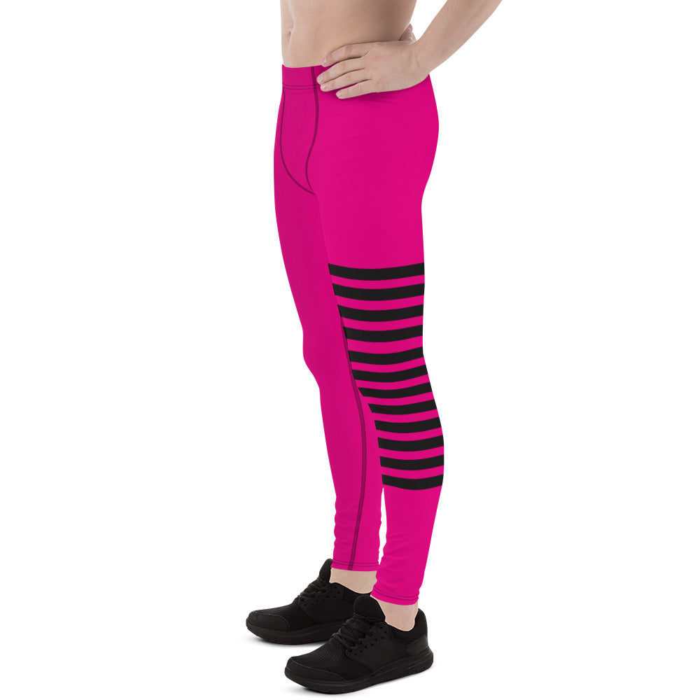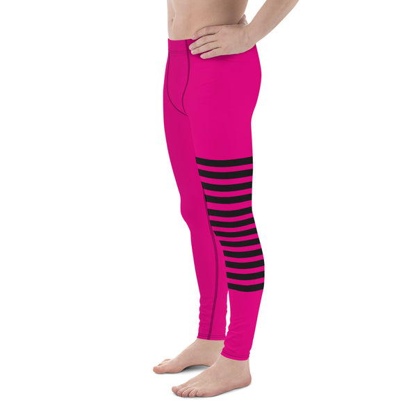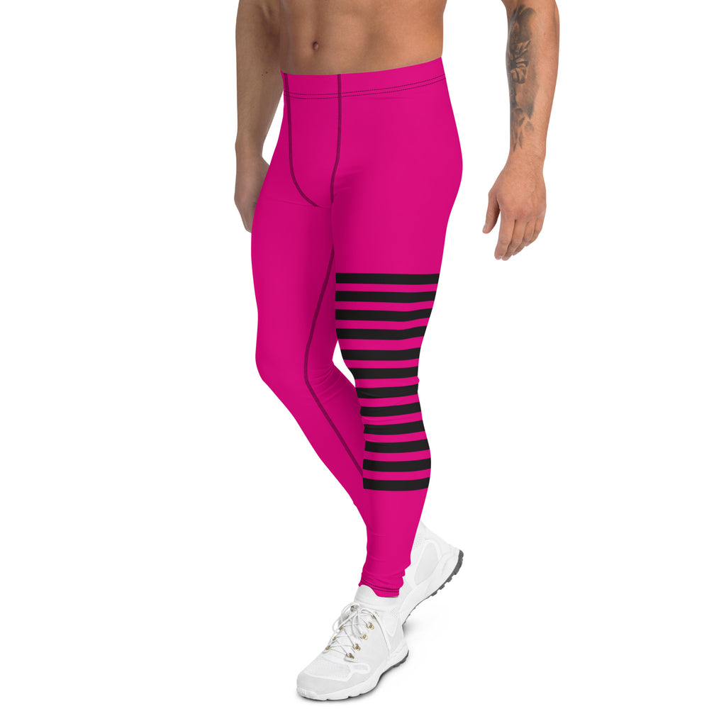Hot Pink Striped Meggings, Black Pink Horizontally Stripes Men's Leggings