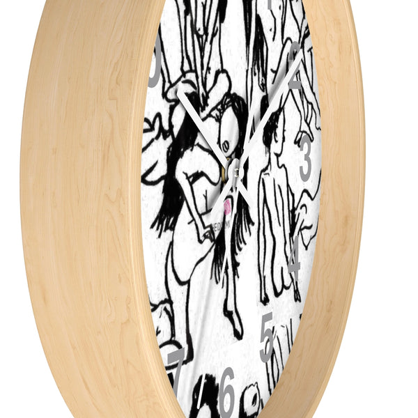 Nude Drawing Art Wall Clock,  Numeric Black White 10 inch Diameter Art Wall Clock-Printed in USA, Large Round Wood Bedroom Wall Clock