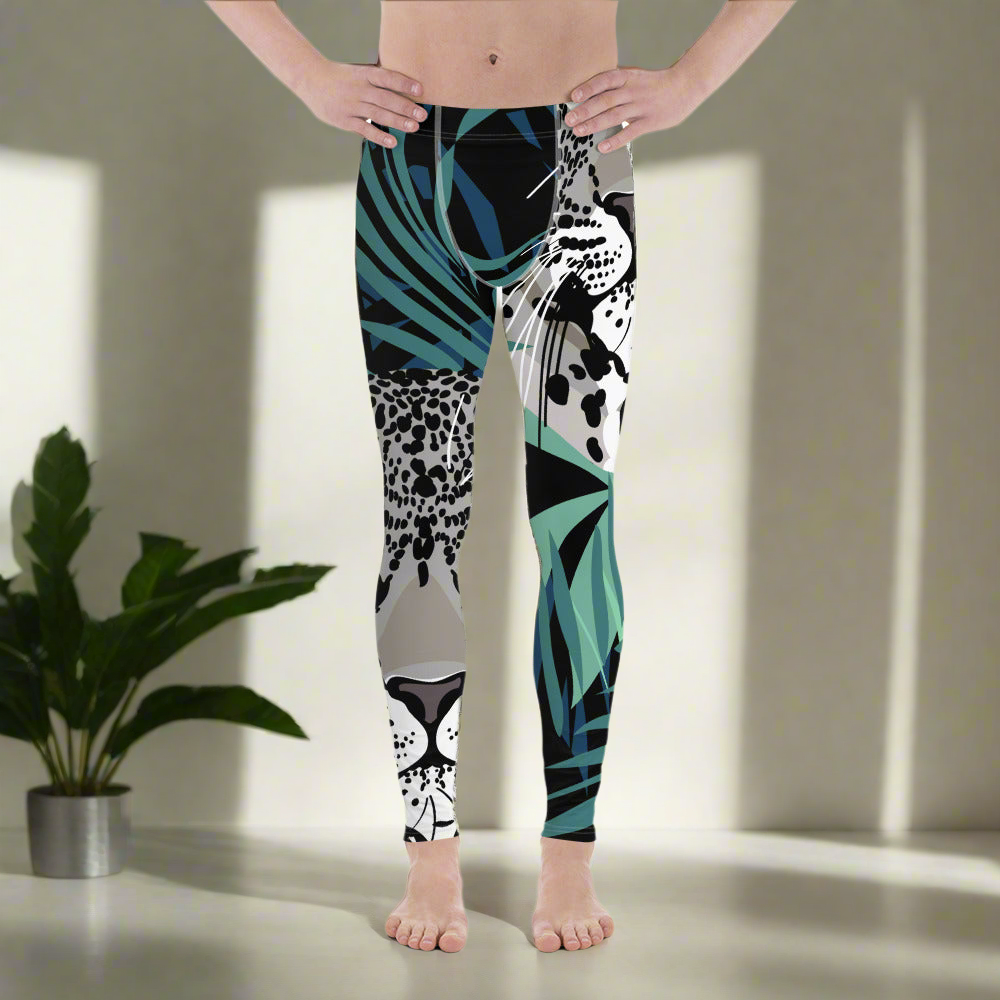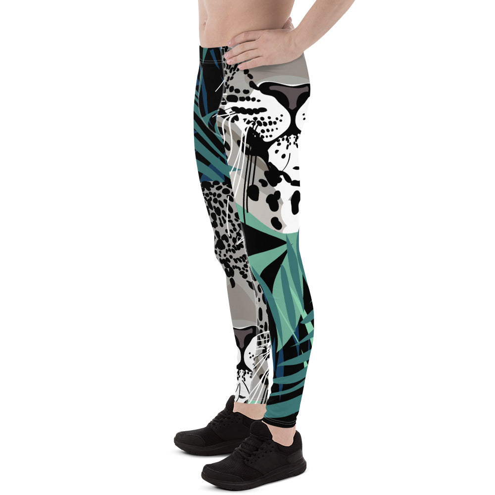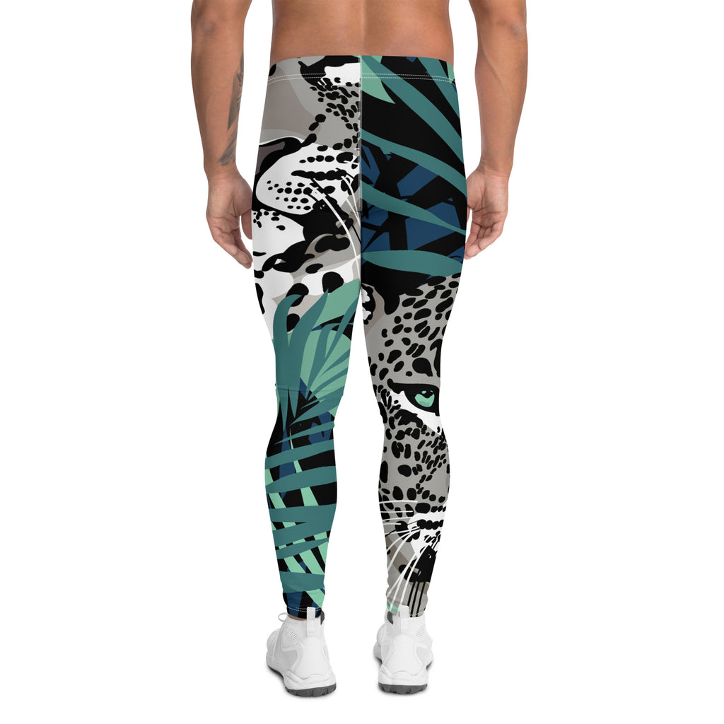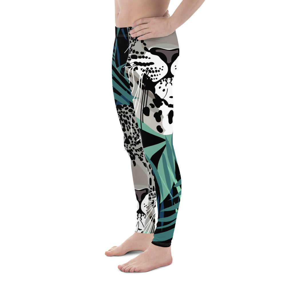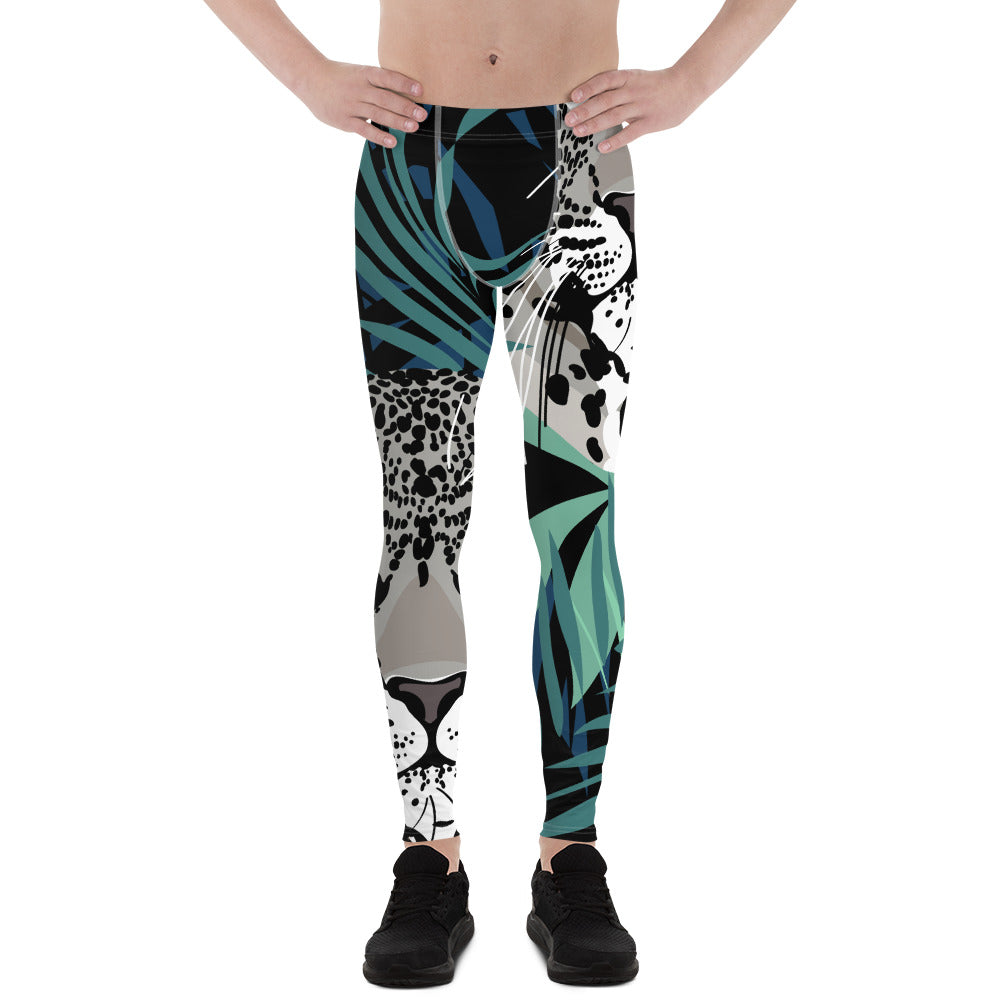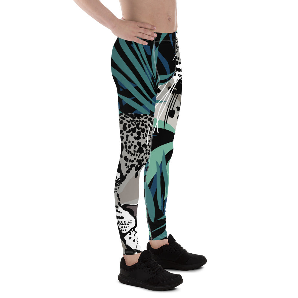 Leopard Print Best Men's Leggings, Tropical Animal Print Designer Men's Compression Sports Tights - Made in USA/EU/MX