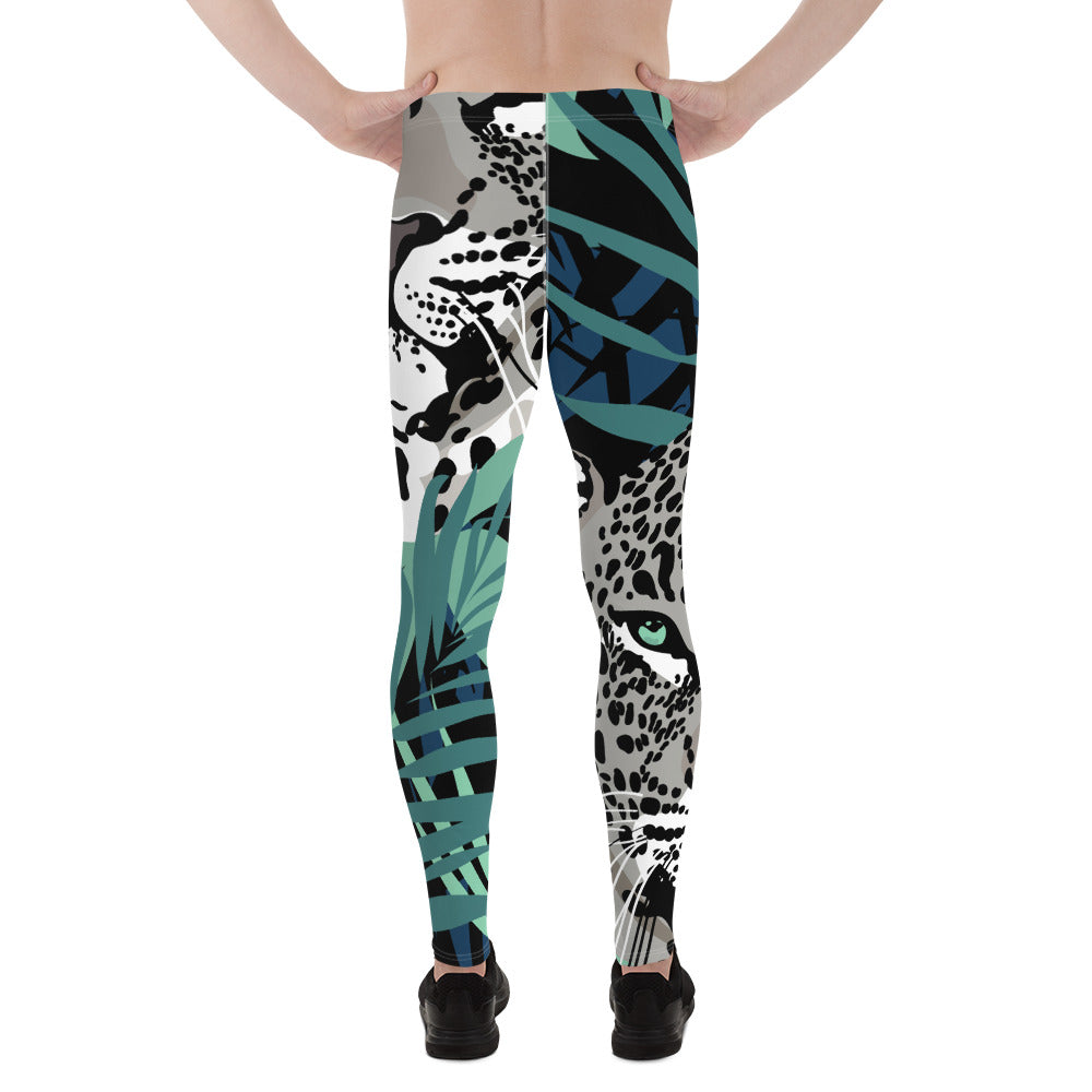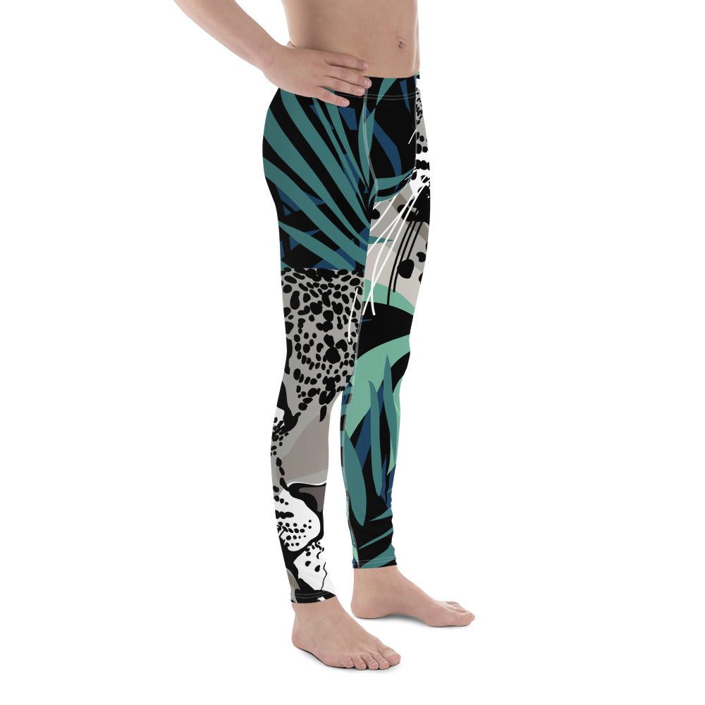 Leopard Print Best Men's Leggings, Tropical Animal Print Pattern Designer Print Sexy Meggings Men's Workout Gym Tights Leggings, Men's Compression Tights Pants - Made in USA/ EU/ MX (US Size: XS-3XL) Patterned Leggings For Men, Tights Workout, Men's Compression Pants, Mens Festival Leggings, Mens Leggings Fashion, Mens Tights