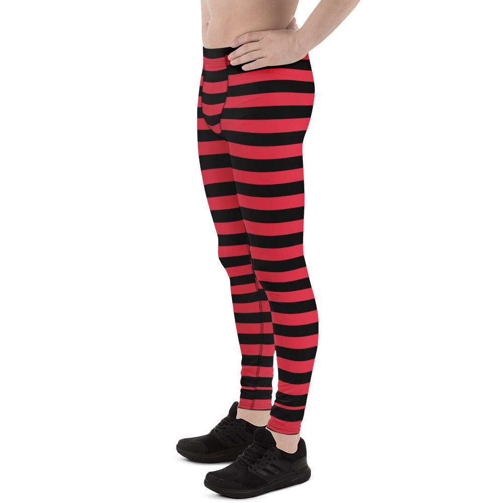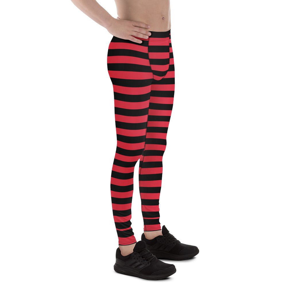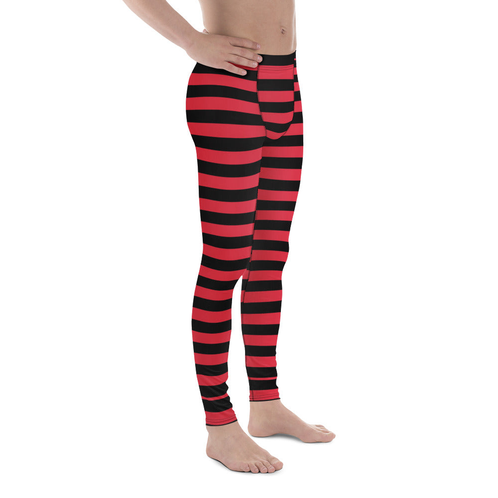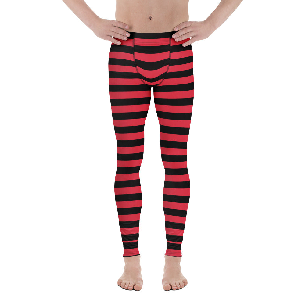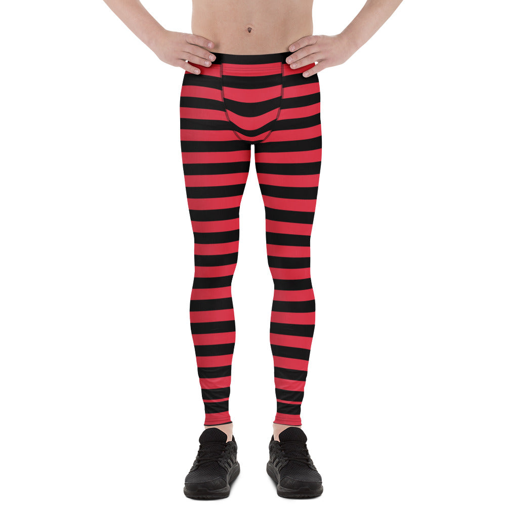 Red Black Horizontal Striped Meggings, Men's Leggings