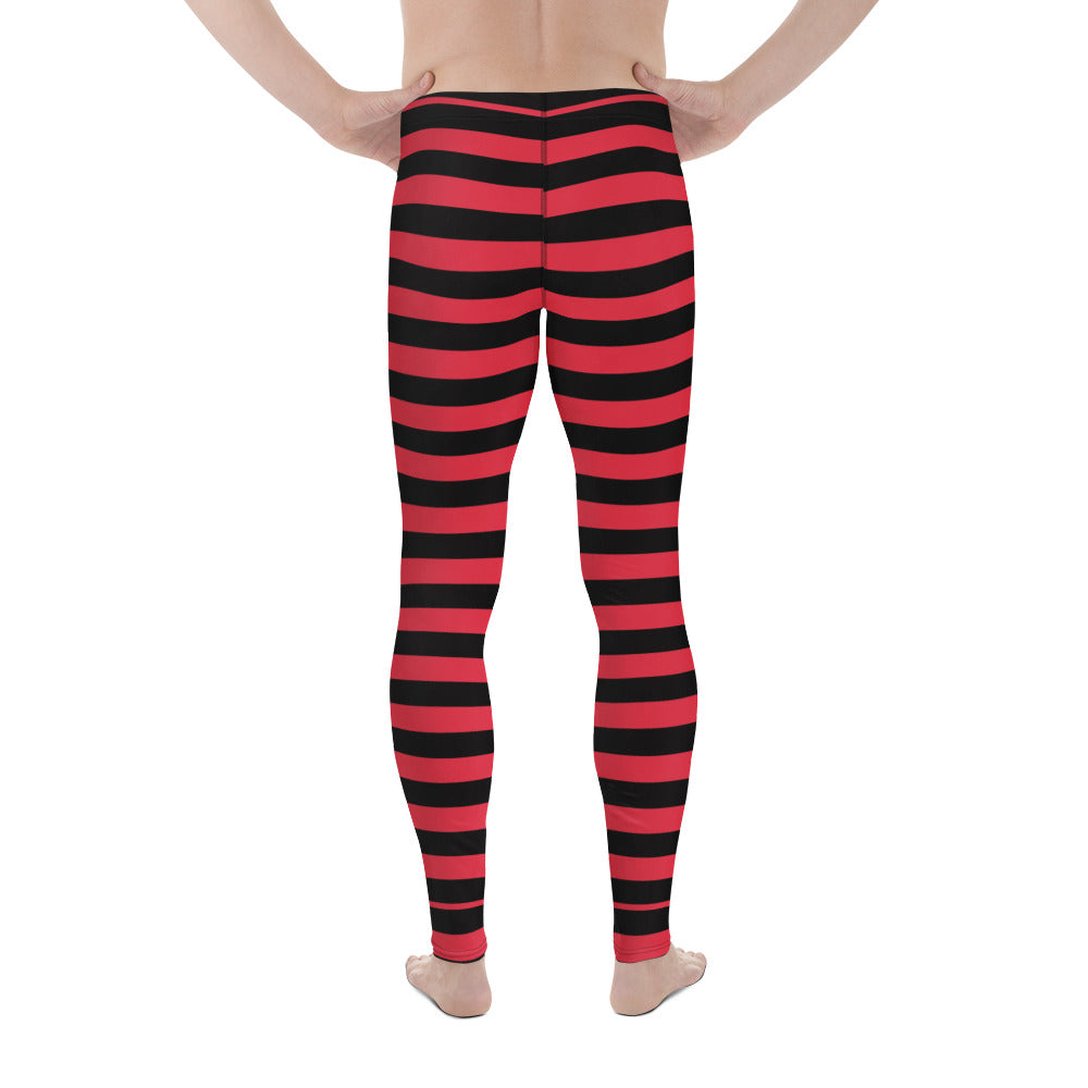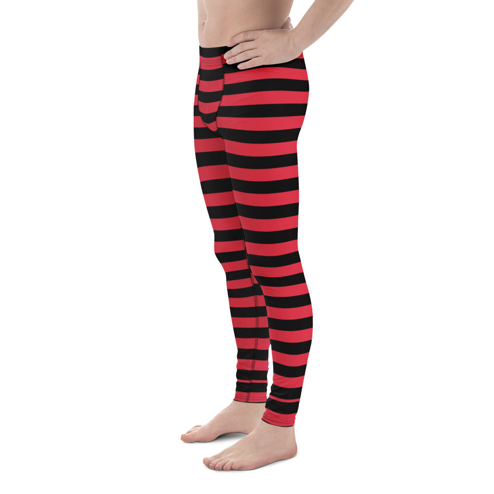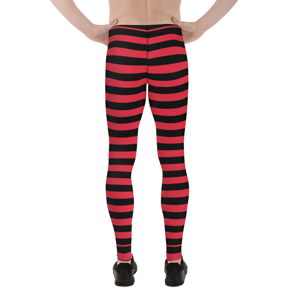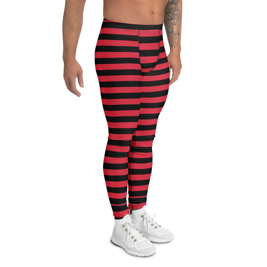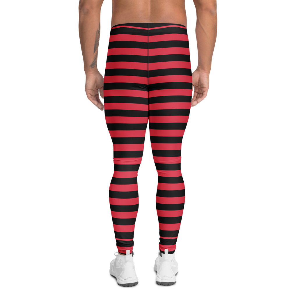 Red Black Horizontal Striped Meggings, Men's Leggings