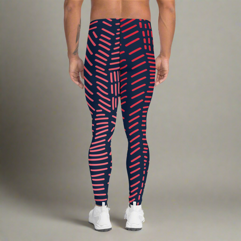 Red Black Abstract Men's Leggings, Abstract Patterned Designer Print Sexy Meggings Men's Workout Gym Tights Leggings, Men's Compression Tights Pants - Made in USA/ EU/ MX (US Size: XS-3XL)