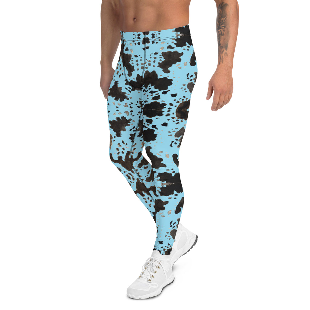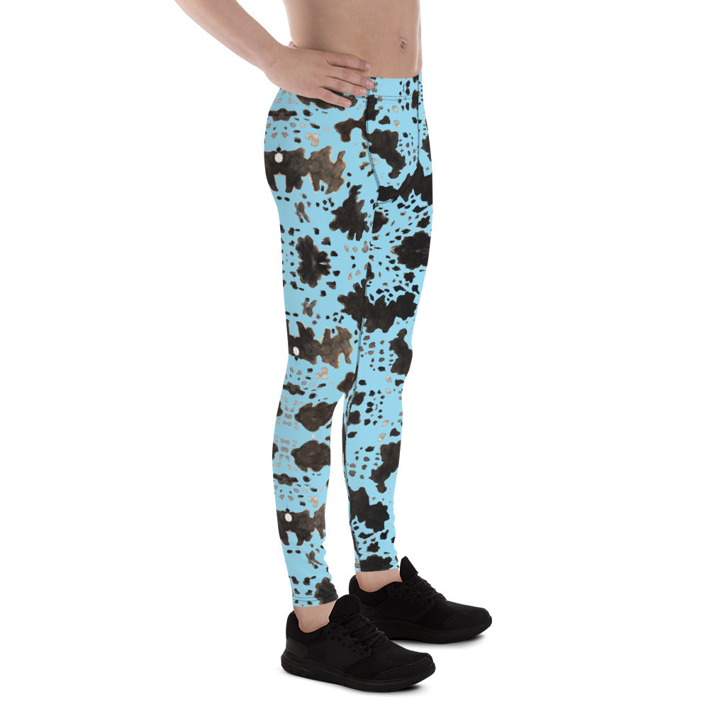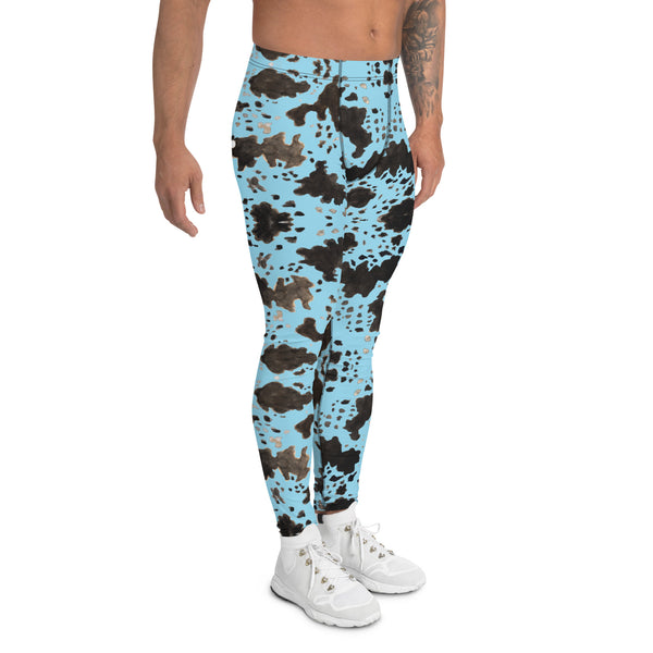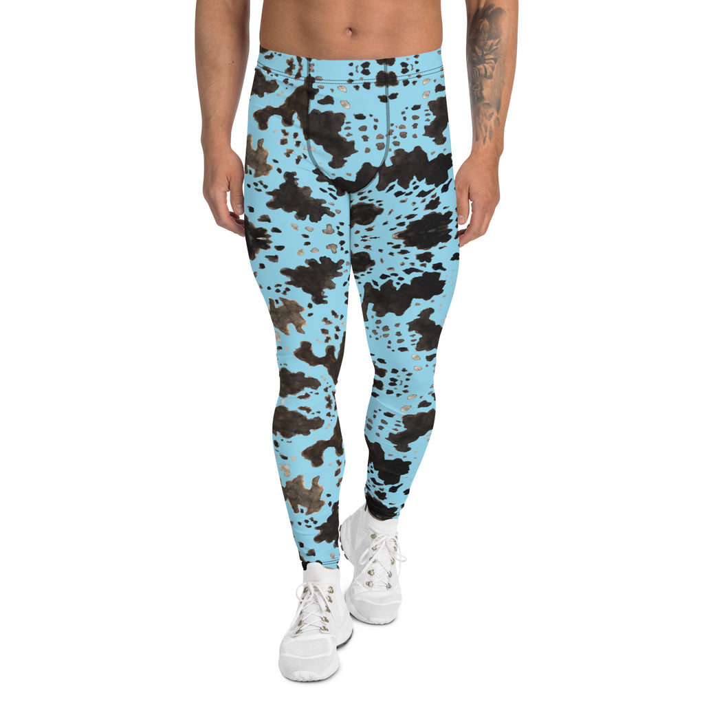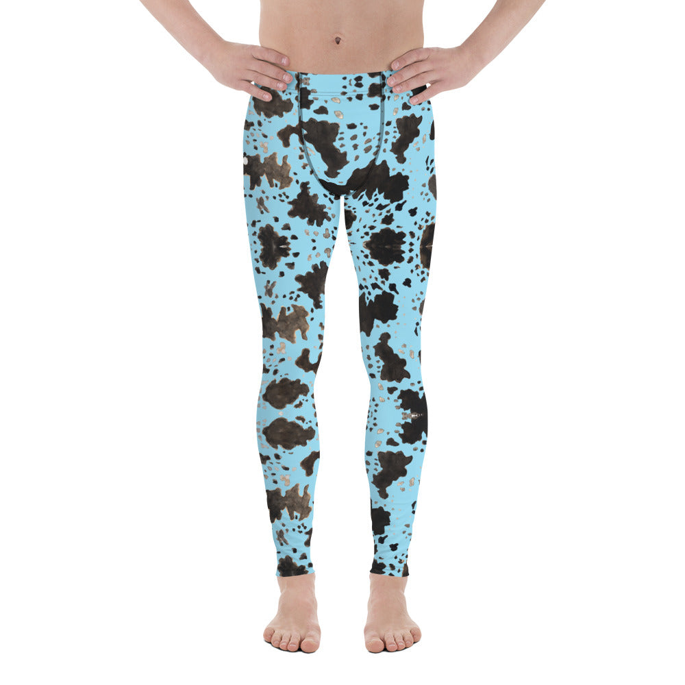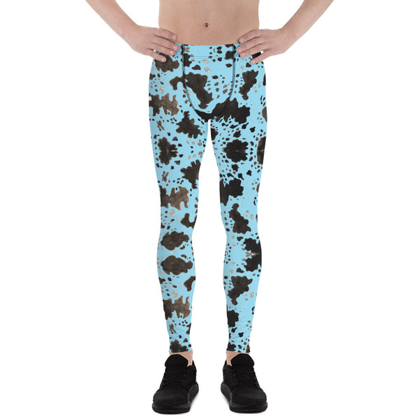Blue Cow Print Men's Leggings, Designer Men's Compression Sports Tights - Made in USA/EU/MX