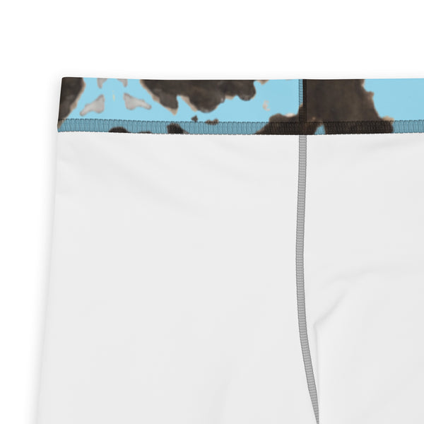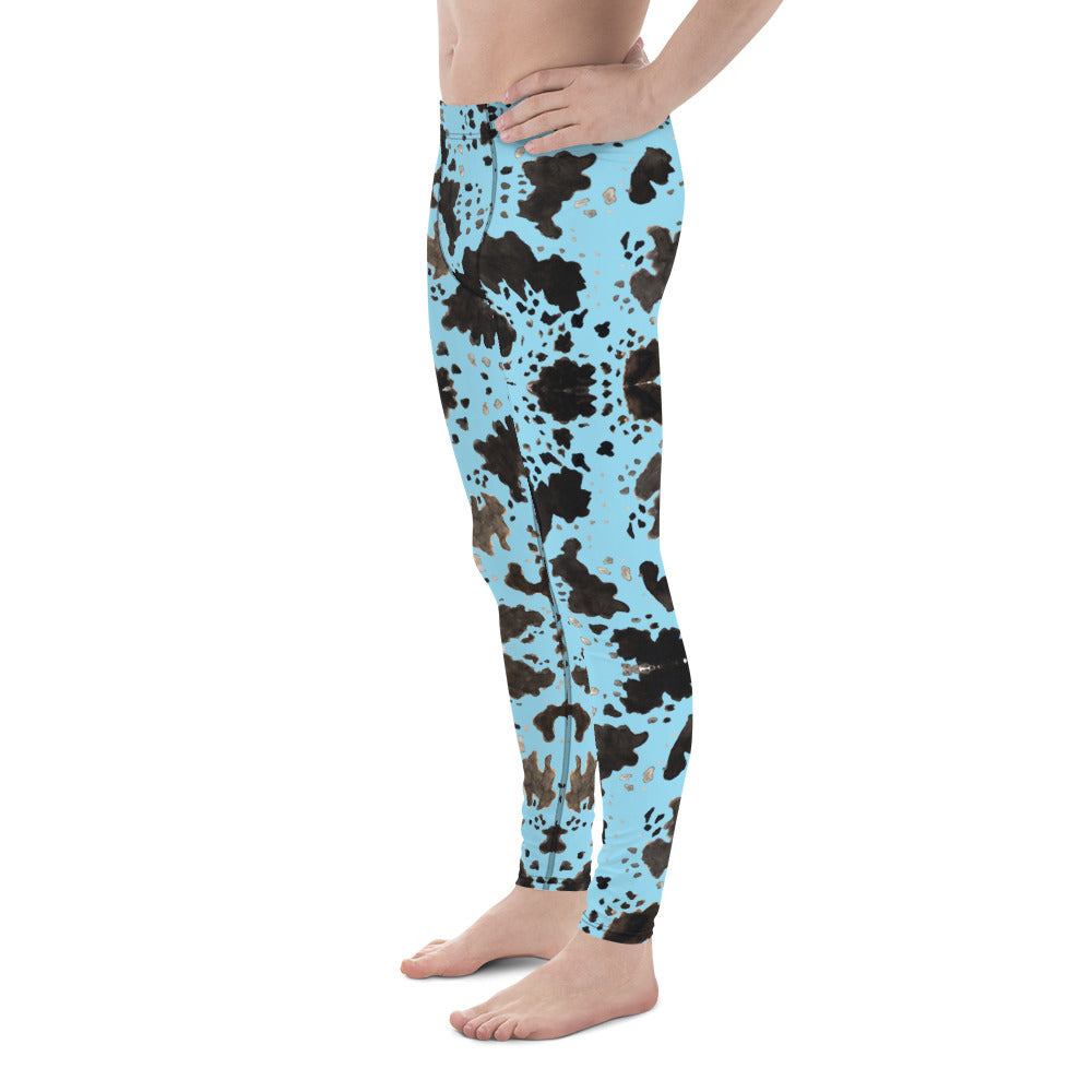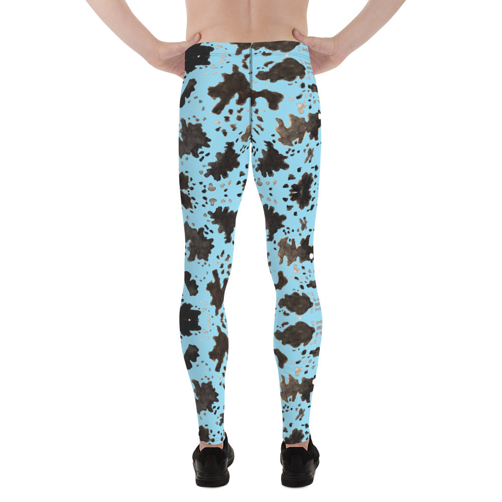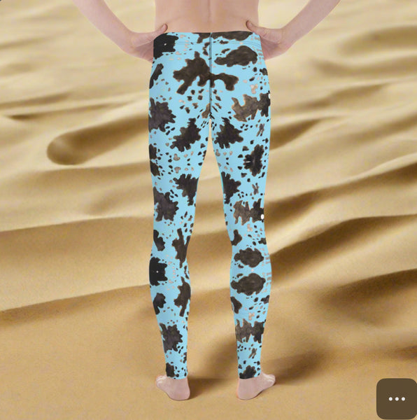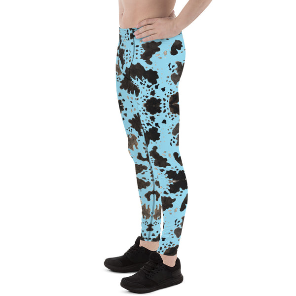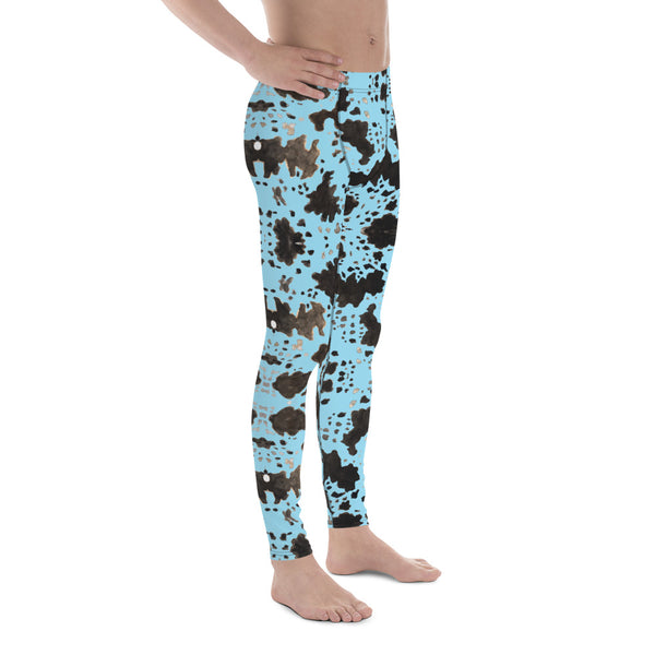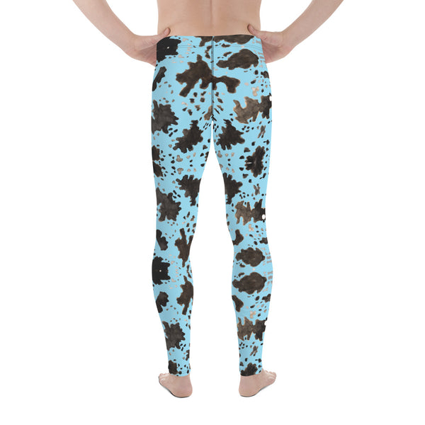 Blue Cow Print Men's Leggings, Designer Men's Compression Sports Tights - Made in USA/EU/MX