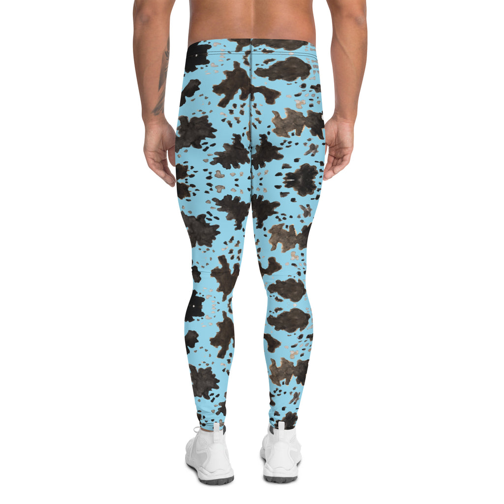 Blue Cow Print Men's Leggings, Brown Cow Animal Print Pattern Designer Print Sexy Meggings Men's Workout Gym Tights Leggings, Men's Compression Tights Pants - Made in USA/ EU/ MX (US Size: XS-3XL) Patterned Leggings For Men, Tights Workout, Men's Compression Pants, Mens Festival Leggings, Mens Leggings Fashion, Mens Tights