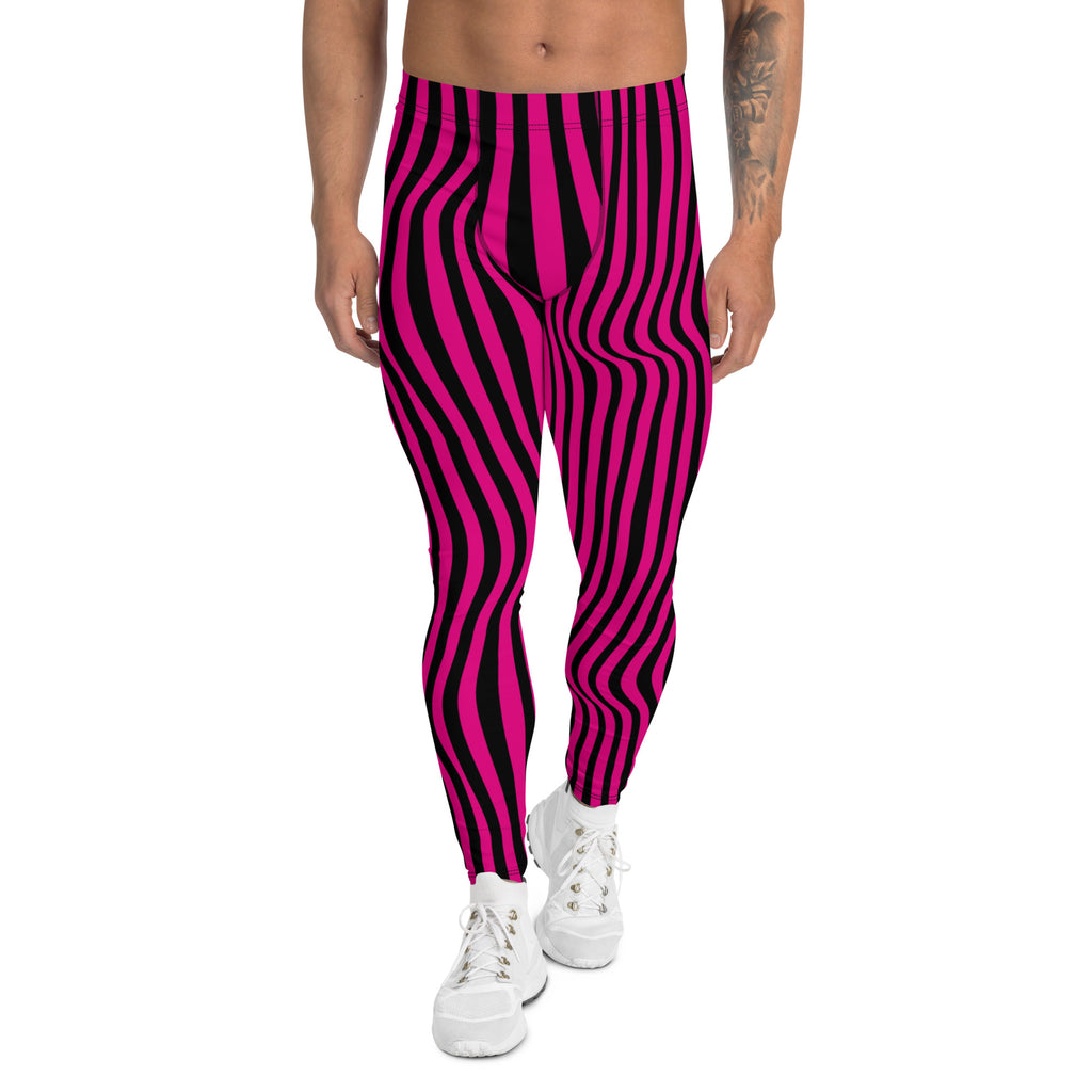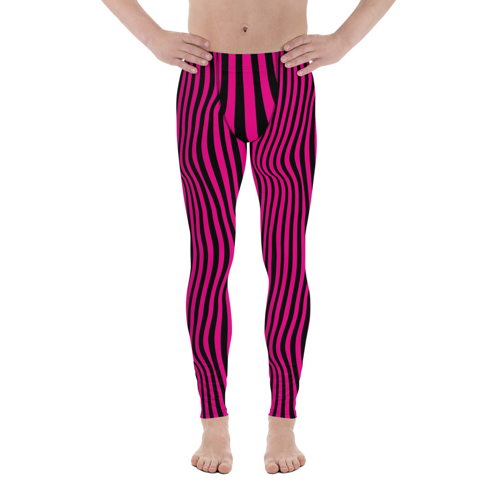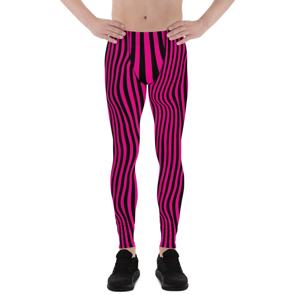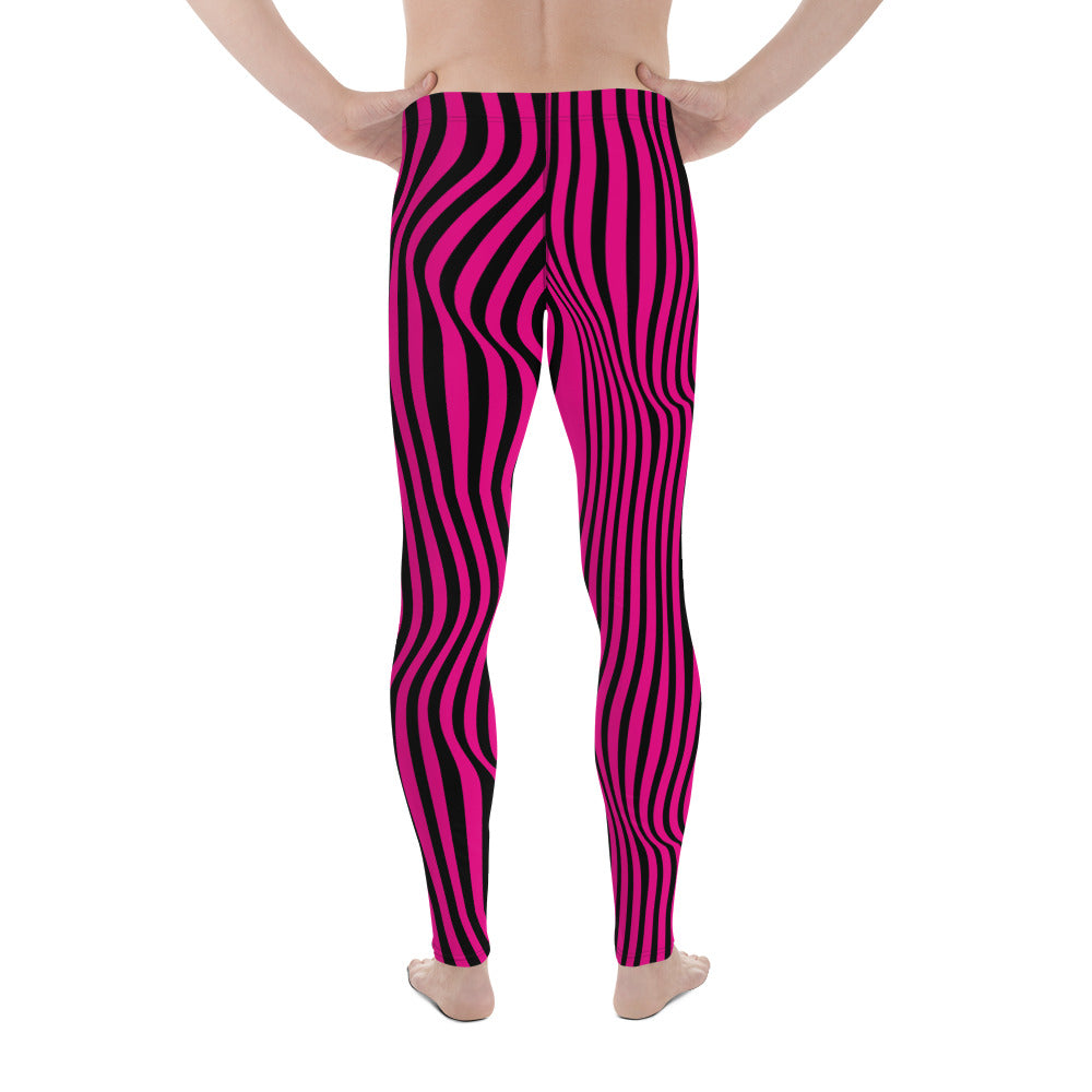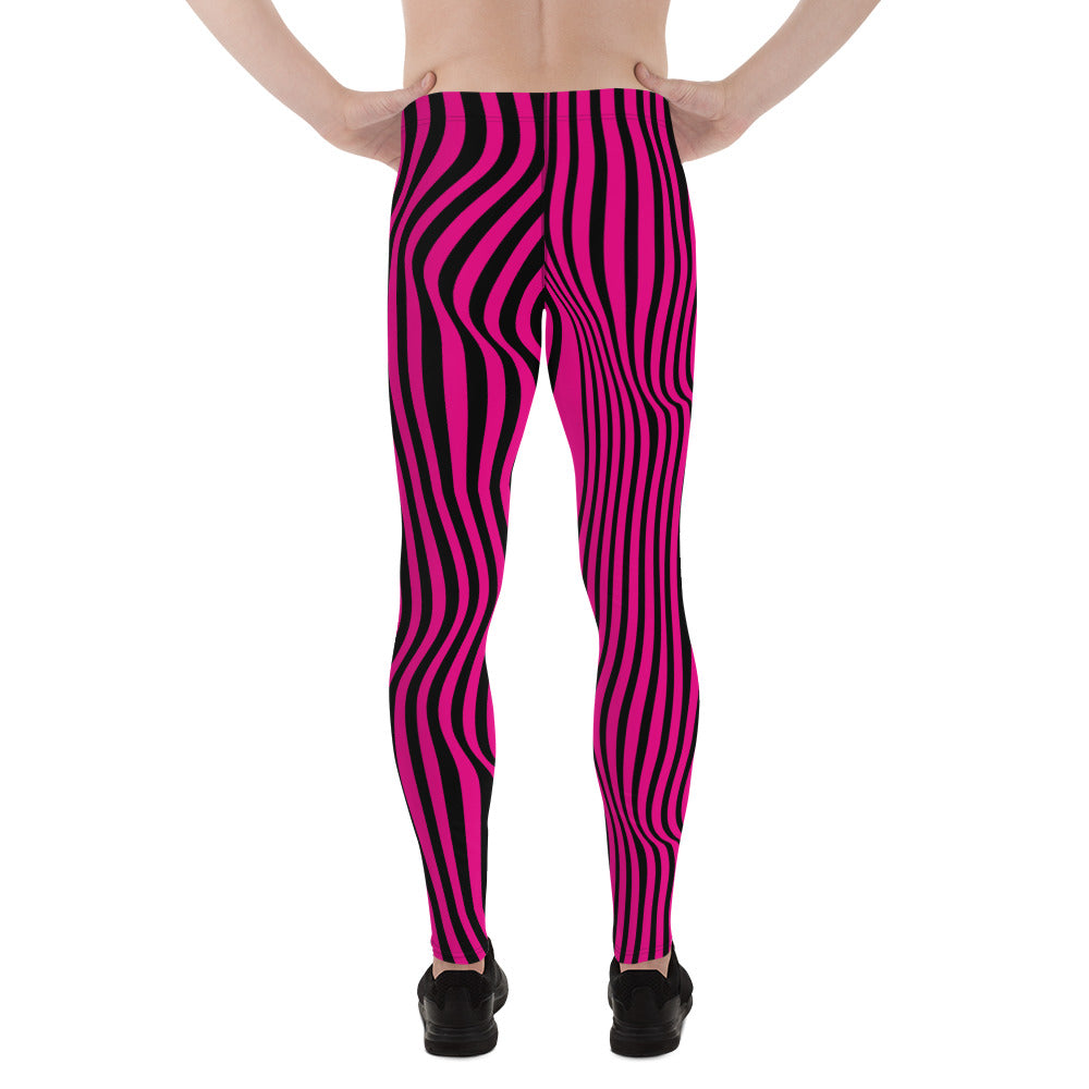 Hot Pink Black Wavy Meggings, Best Men's Leggings