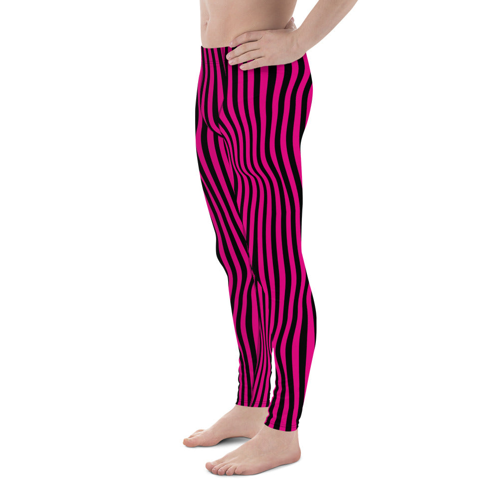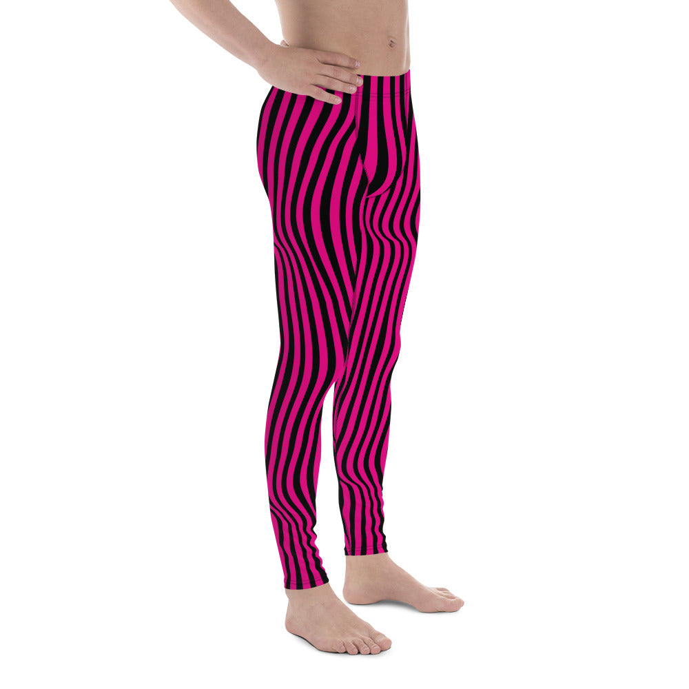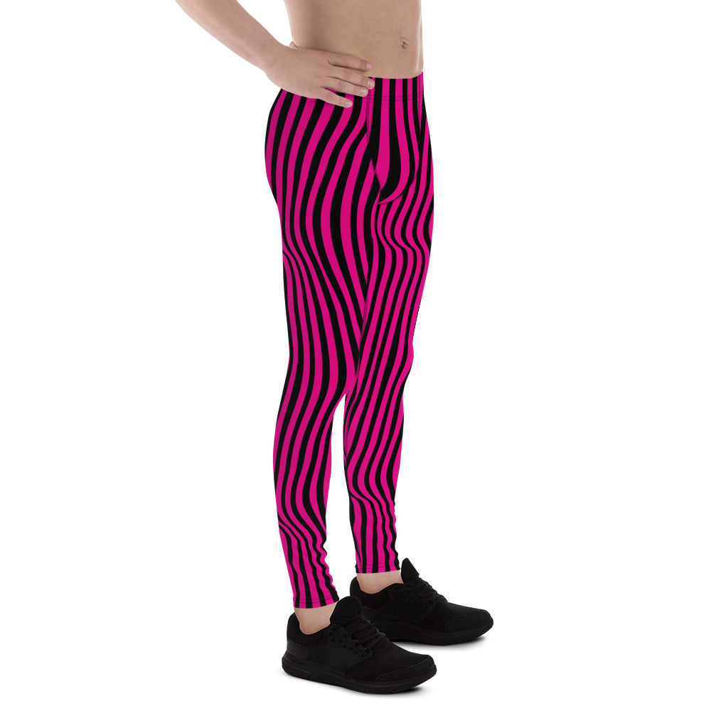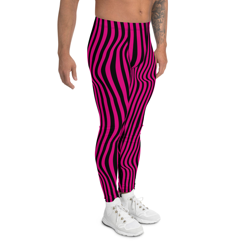 Hot Pink Black Wavy Meggings, Best Men's Leggings