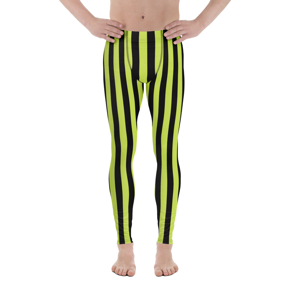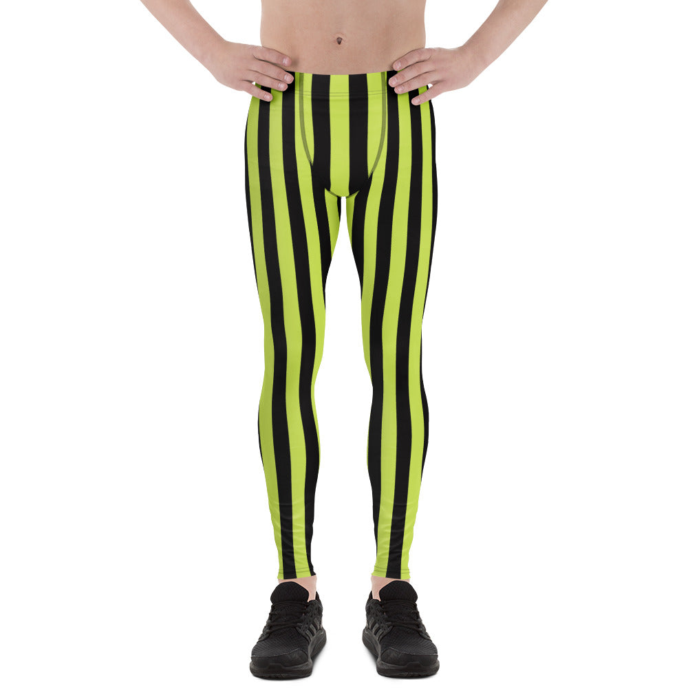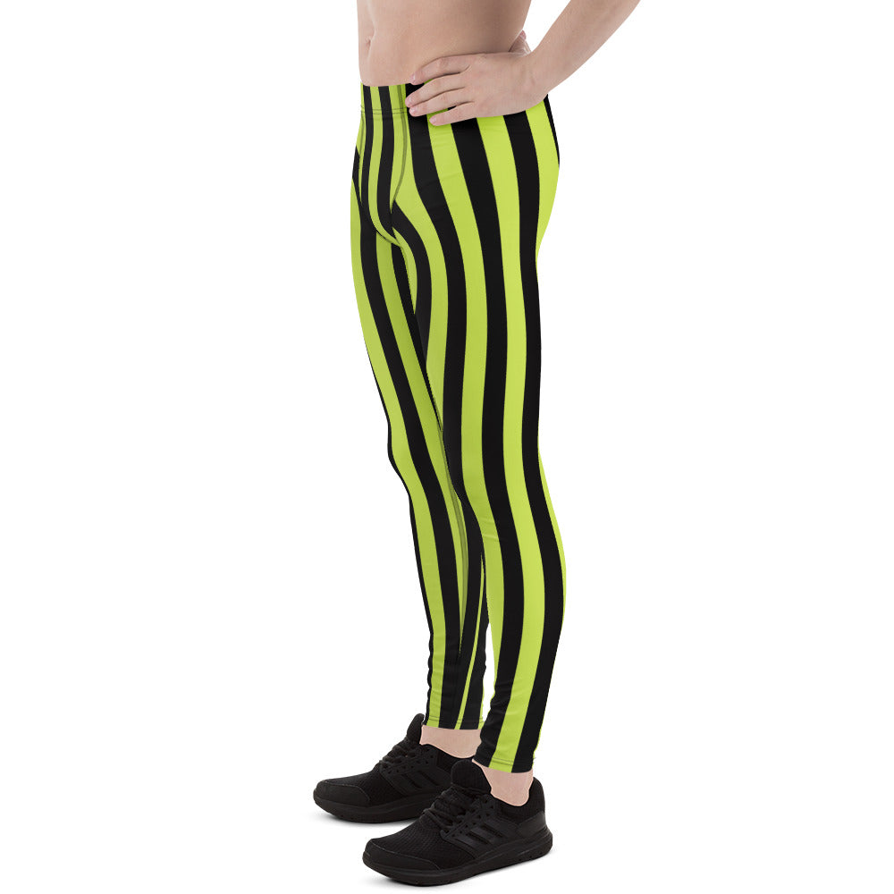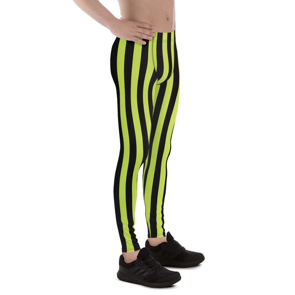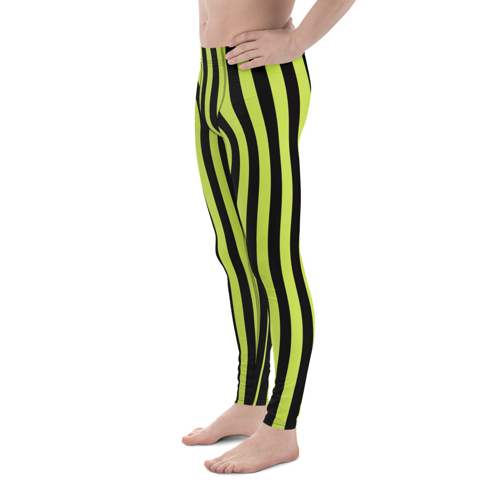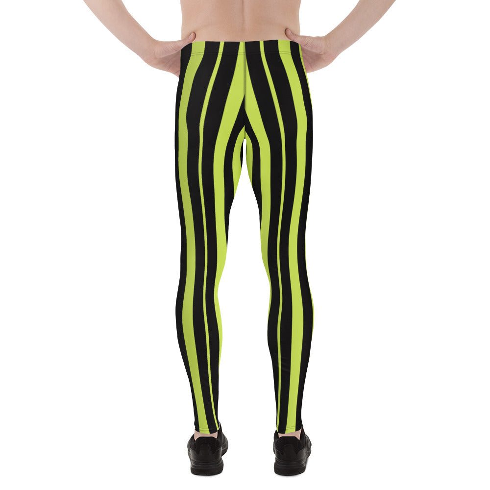 Green Black Striped Men's Leggings