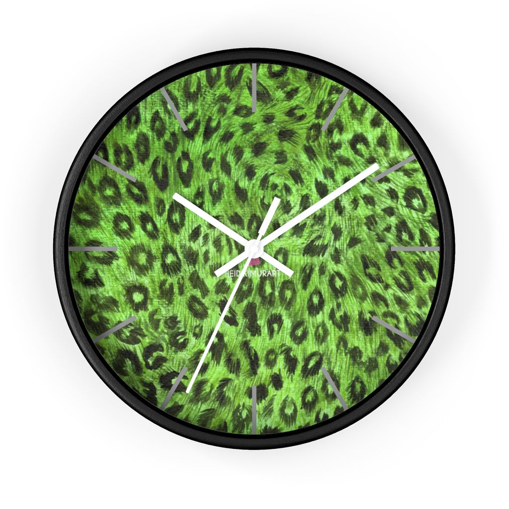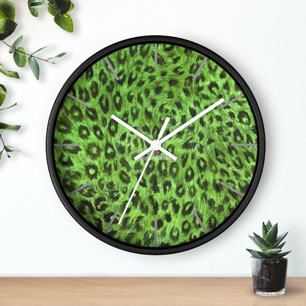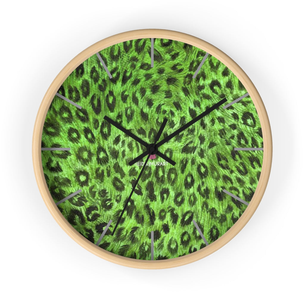 Green Leopard Print Wall Clock,  Numeric 10 inch Diameter Wall Clock, Large Round Wood Girl Children Bedroom Wall Clock