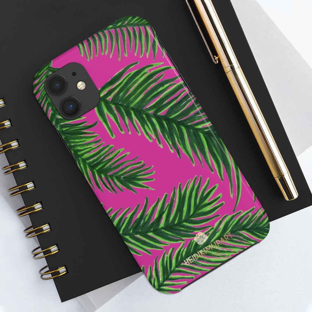 Hot Pink Tropical Print Phone Case, Palm Leaf Case Mate Tough Phone Cases-Made in USA - Heidikimurart Limited