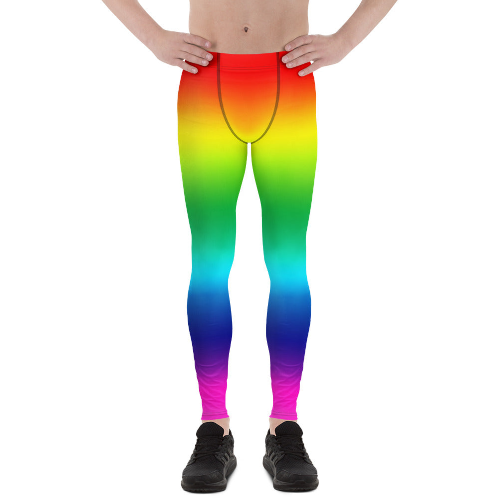 Rainbow Ombre Meggings, Gay Pride Designer Men's Leggings