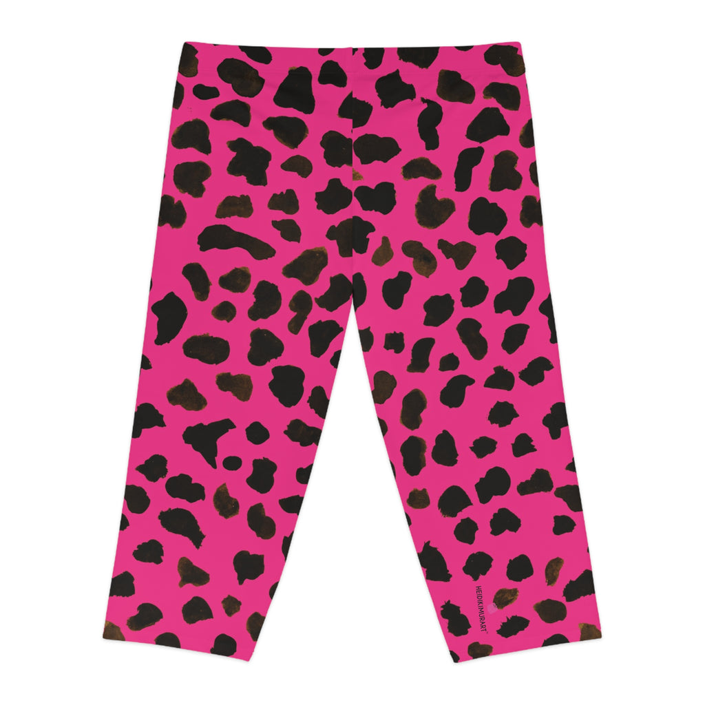 Create a unique daily staple with these pink cow spots animal print casual capri leggings for women - they're bound to look great from home all the way to the gym. Each pair of these pink cow spots animal print capris tights stops right at the knee point and is made with a stretchy fabric for a silhouette-complimenting fit. Made in the USA for quality control, these unique women's casual capri designer leggings come with a mid-waist fit for extra style points. We offer sizes from extra small to two extra large for plus size ladies as well. These are made to order 100% brand new women's tights made just for you. We offer worldwide international shipping to most countries.