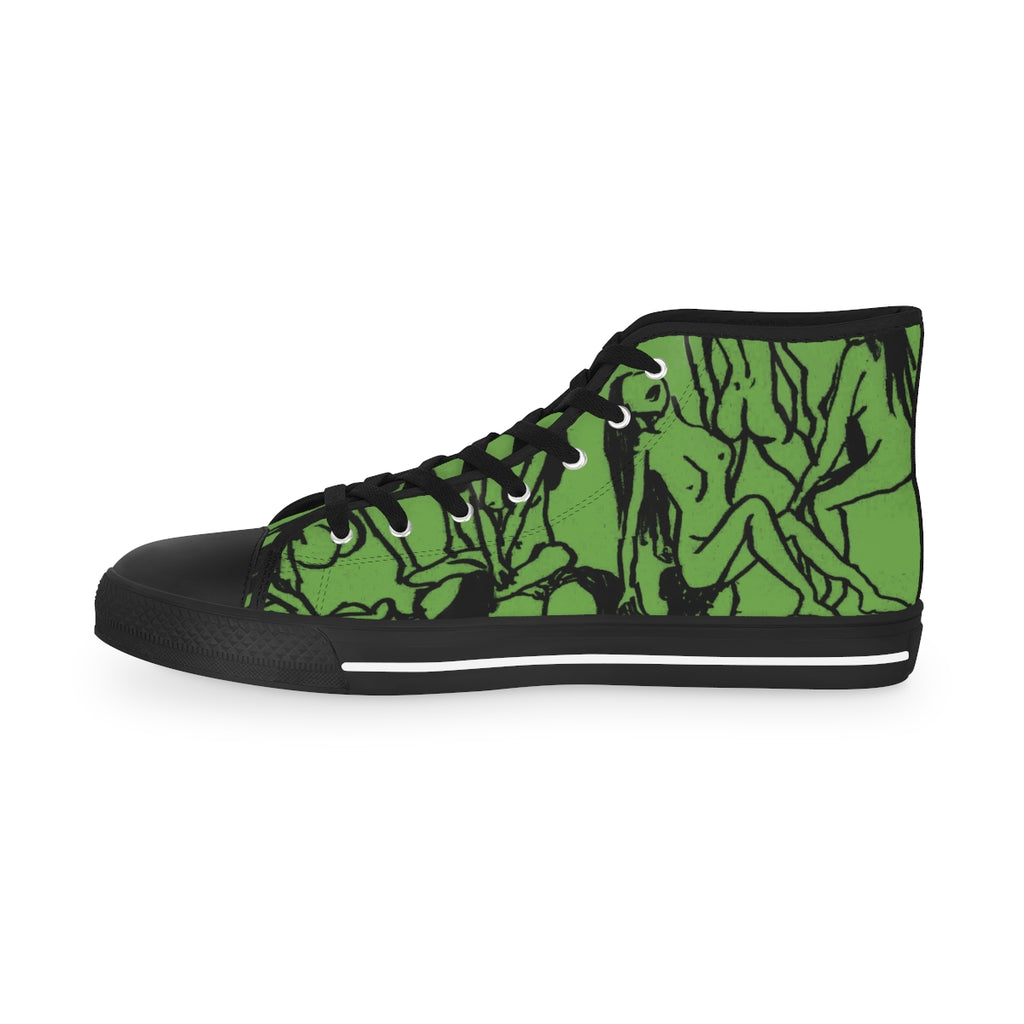 Green Nude Art Men's High Tops, Modern Minimalist Best Men's High Top Sneakers