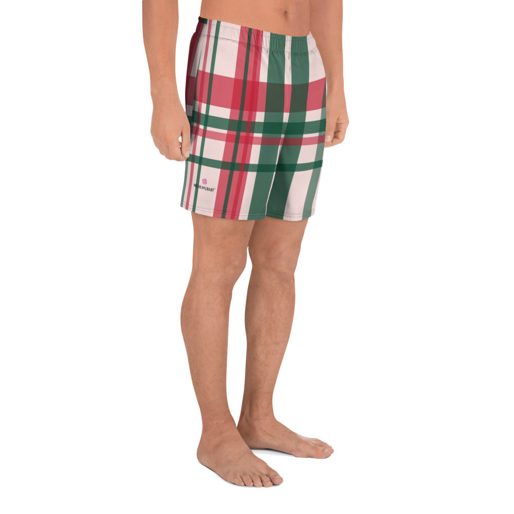 Green Red Plaid Men's Shorts, Best Men's Athletic Long Shorts