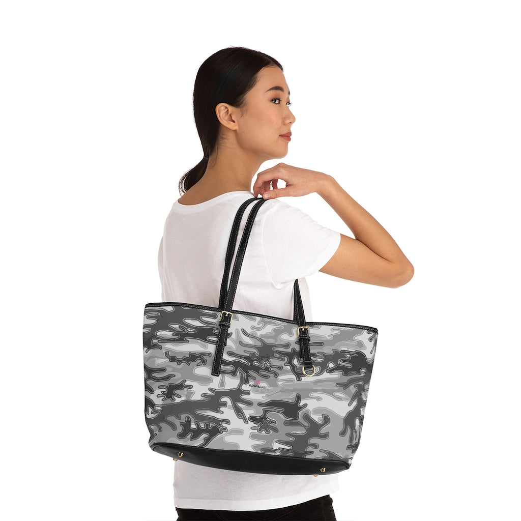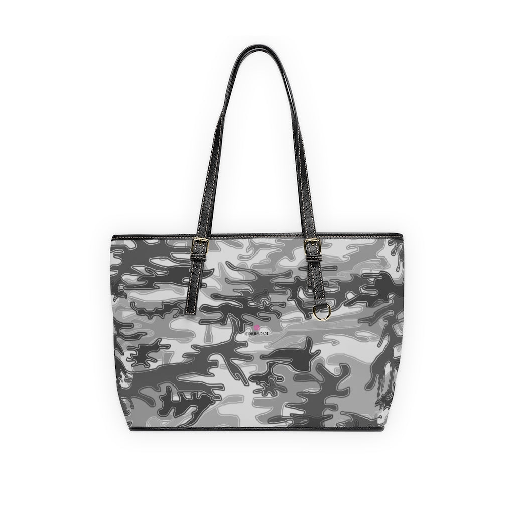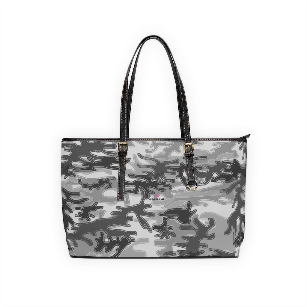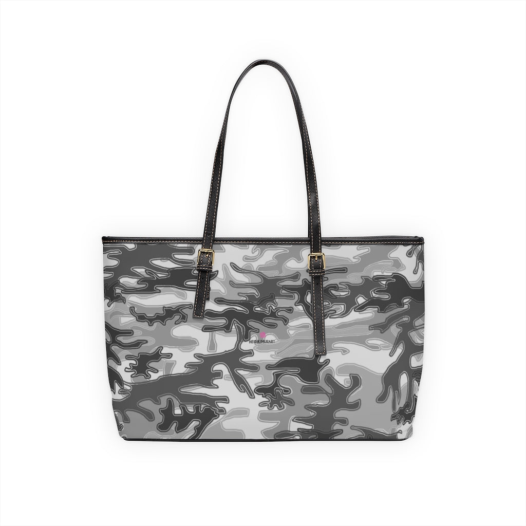 Grey Camo Tote Bag, PU Leather Shoulder Hand Work Bag