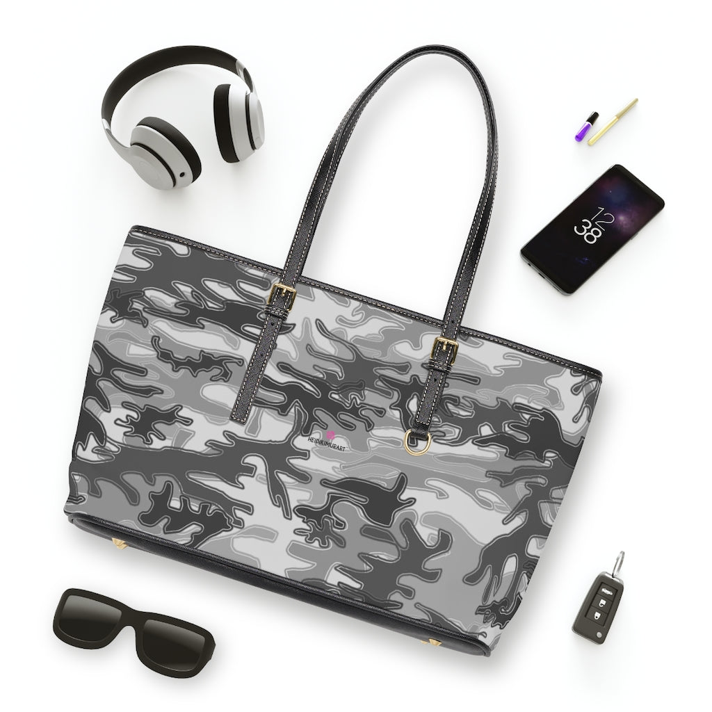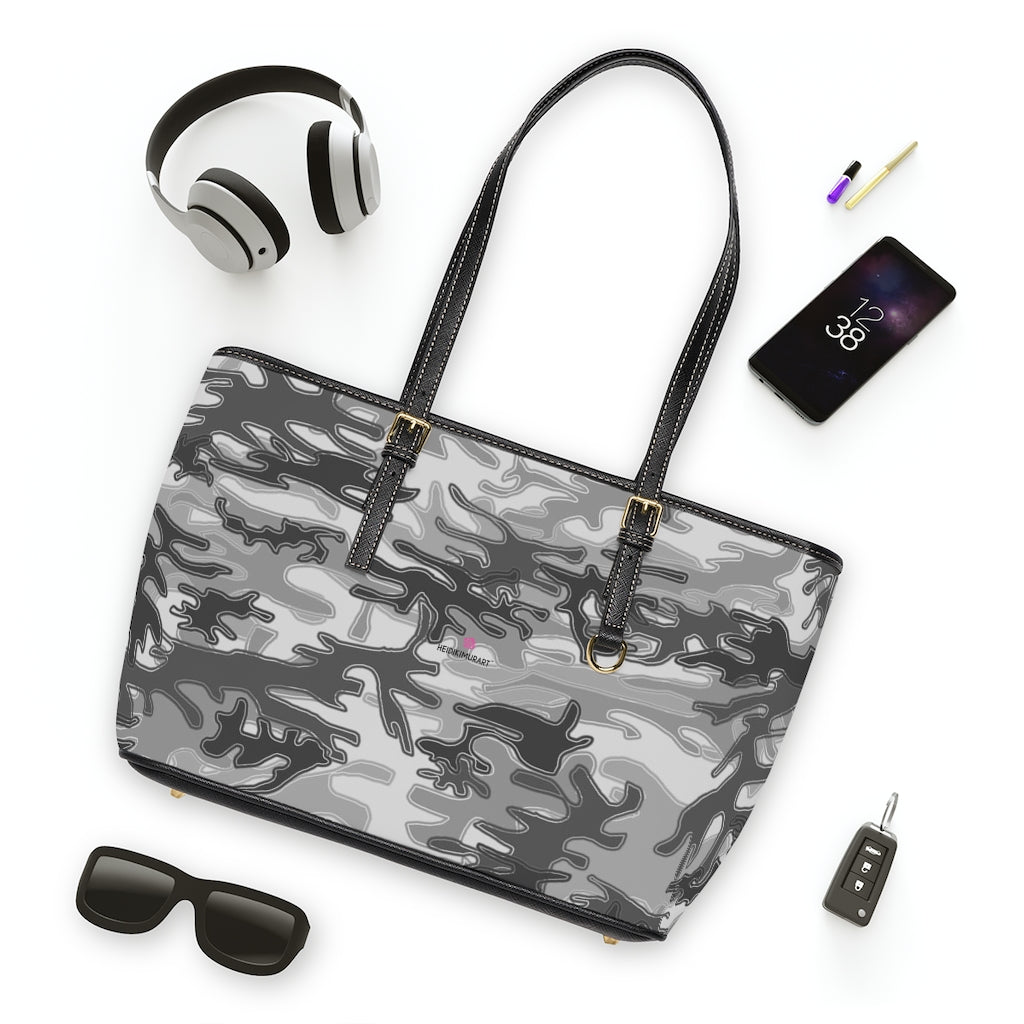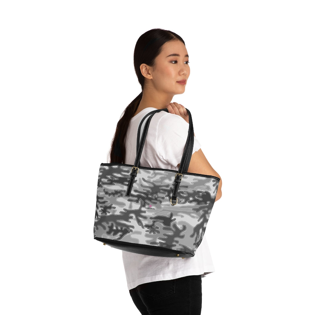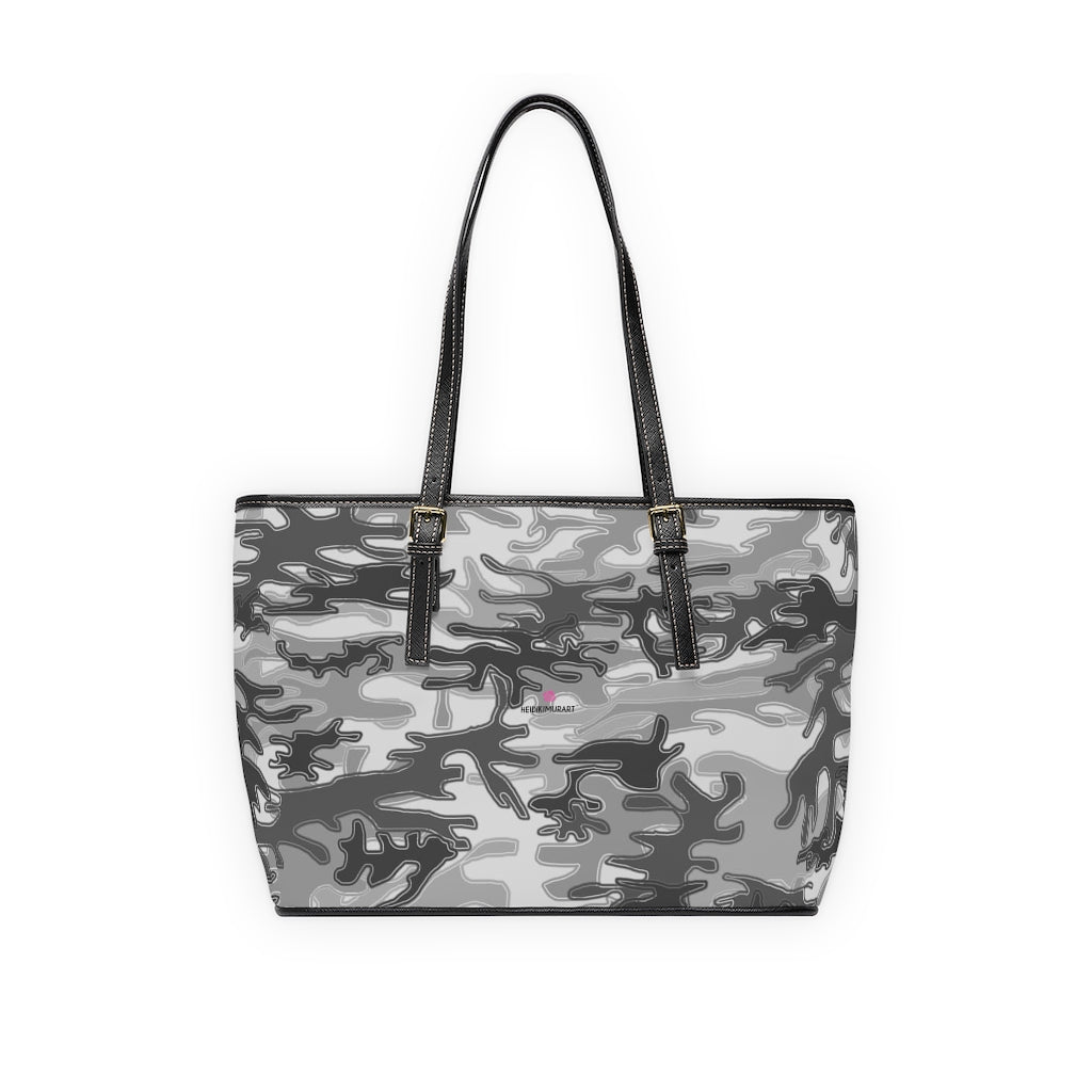 Grey Camo Tote Bag, PU Leather Shoulder Hand Work Bag