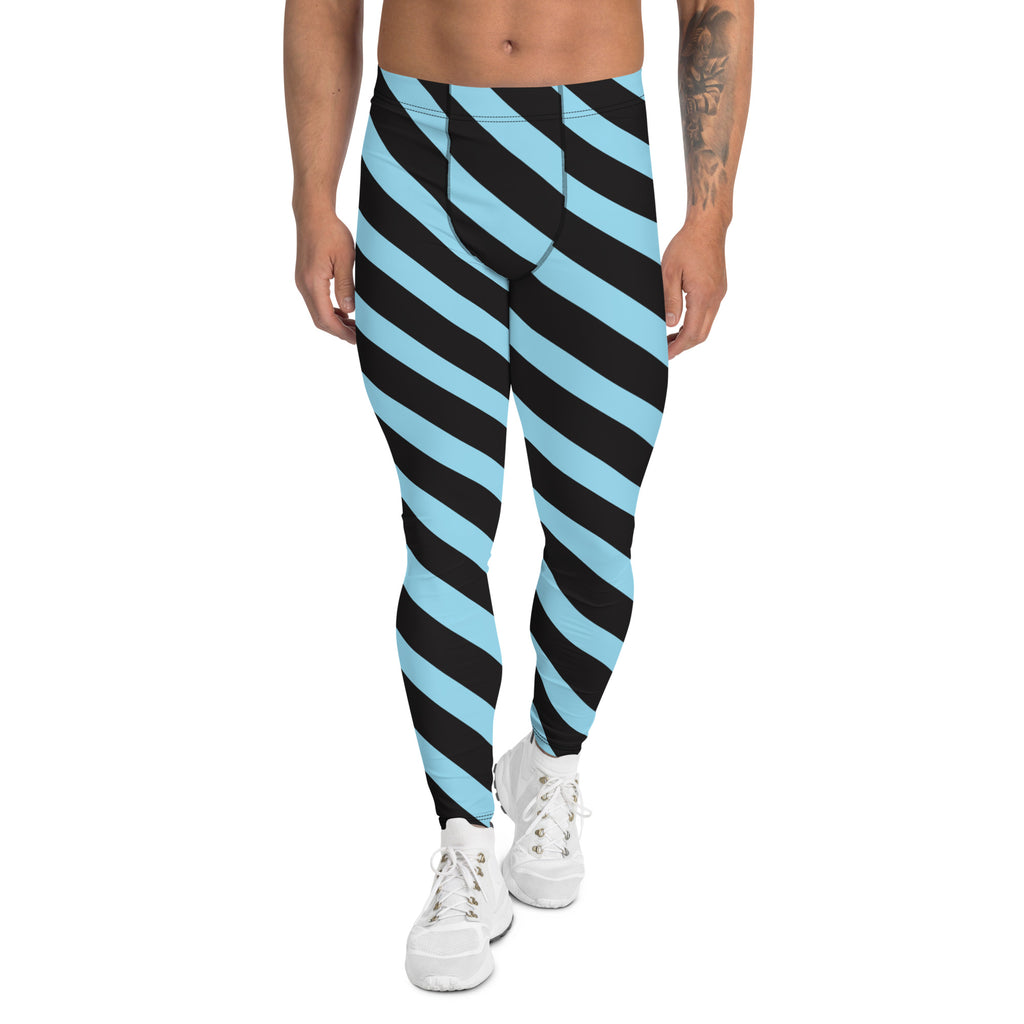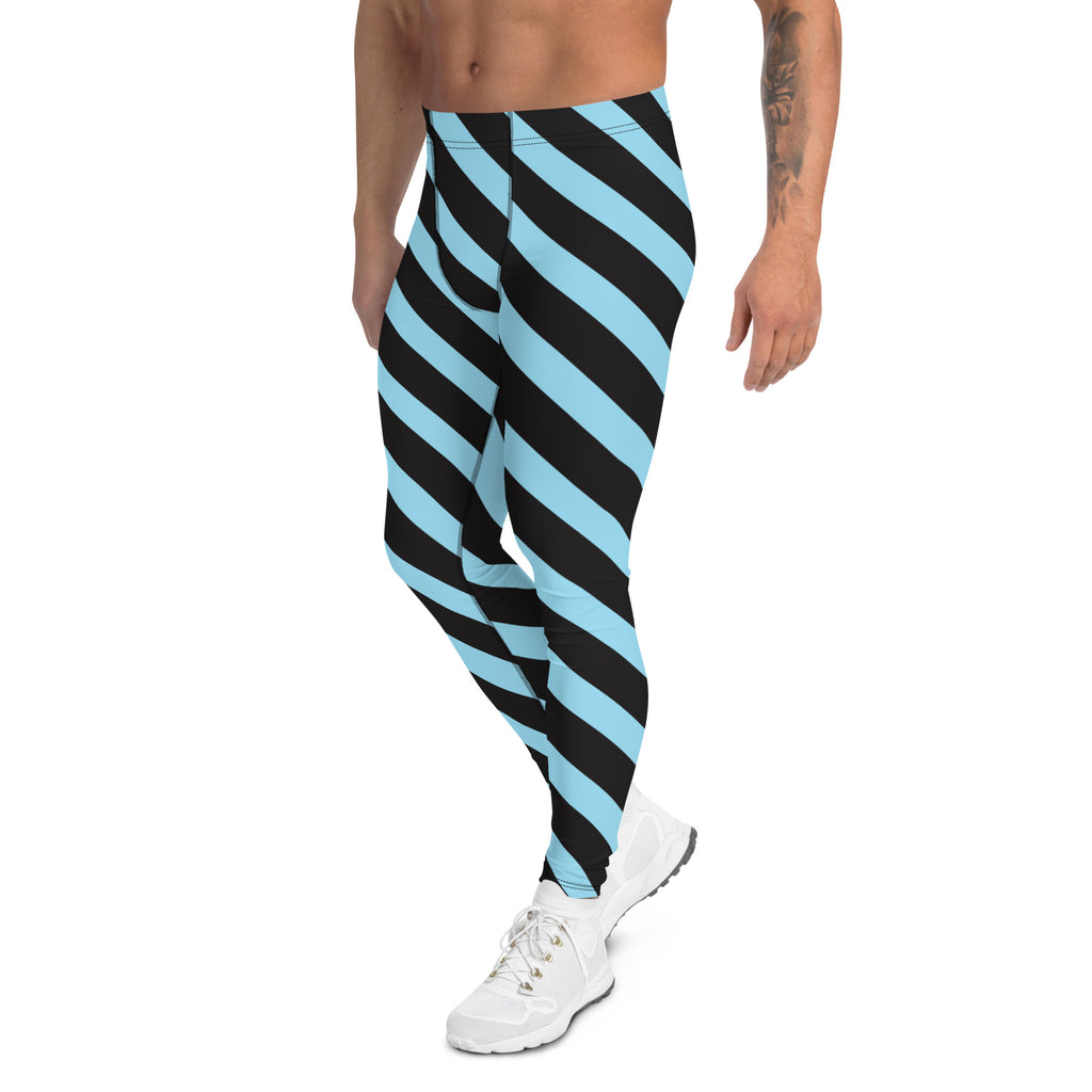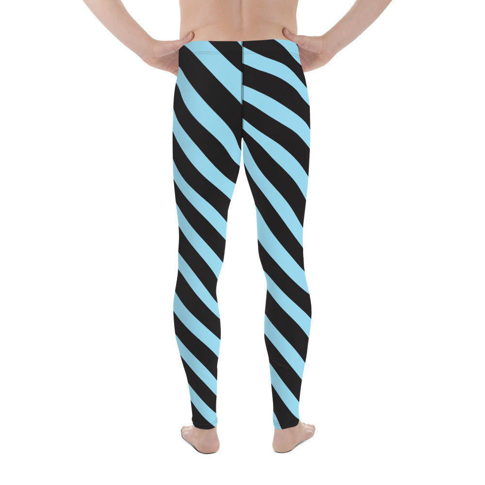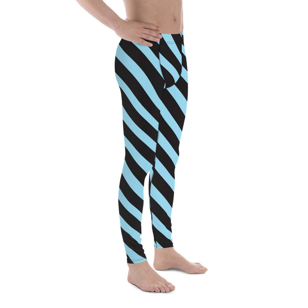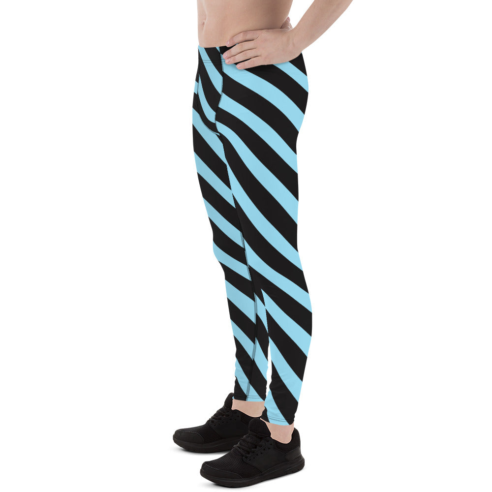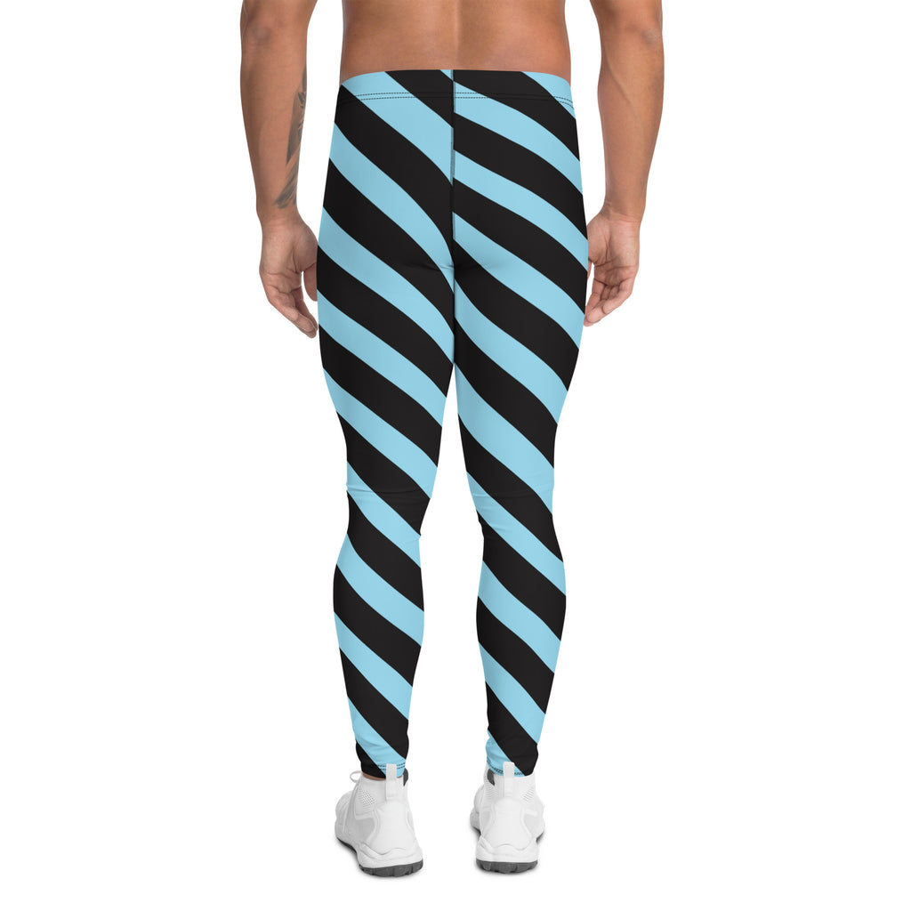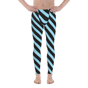 Pastel Blue Striped Meggings,  Black Diagonal Men's Leggings