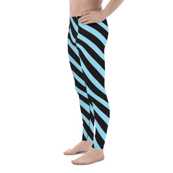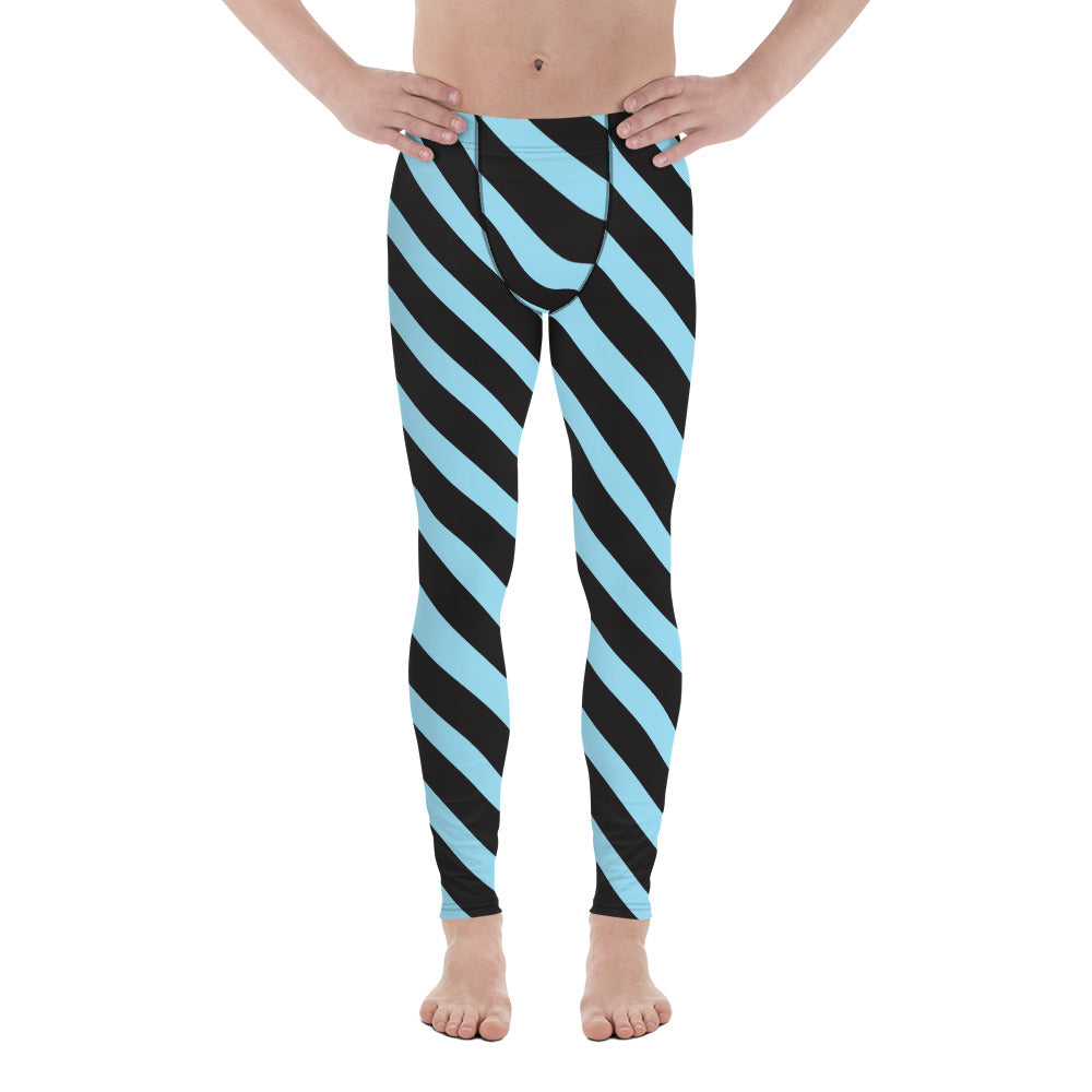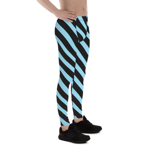 Pastel Blue Striped Meggings, Black Diagonal Men's Leggings