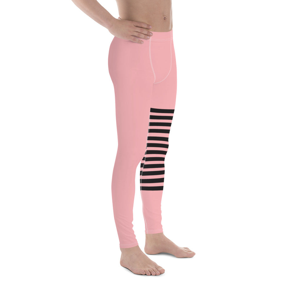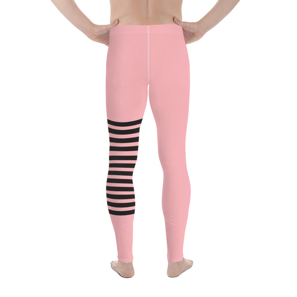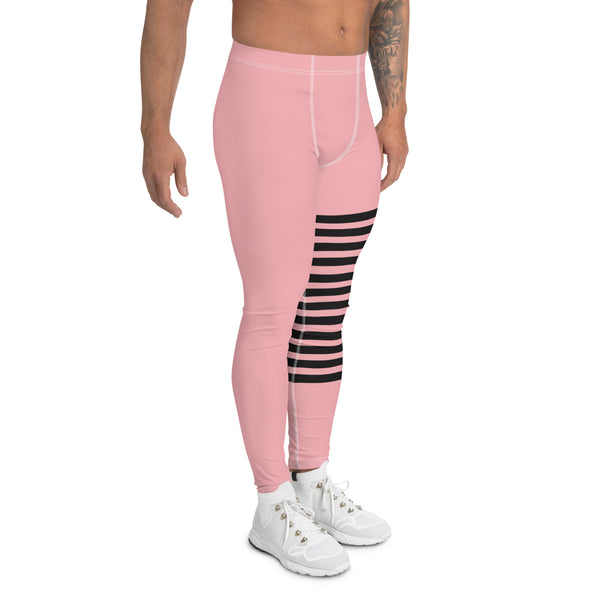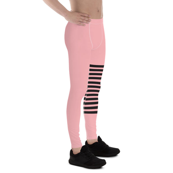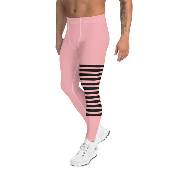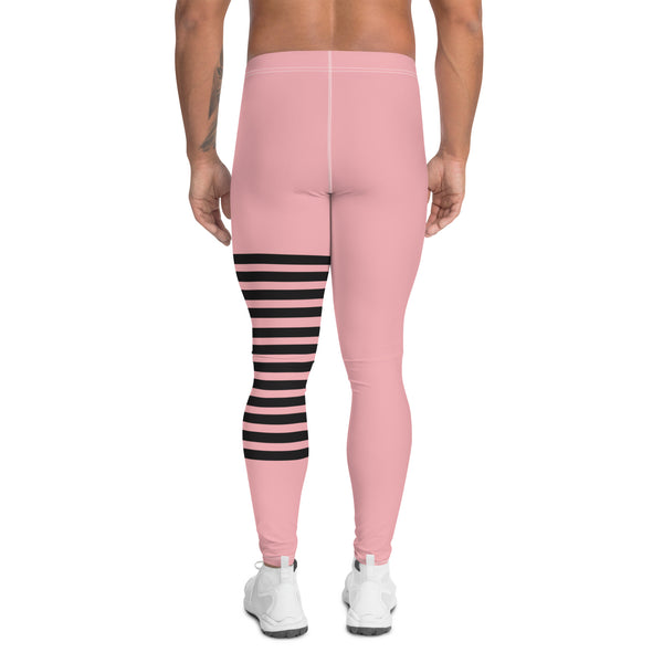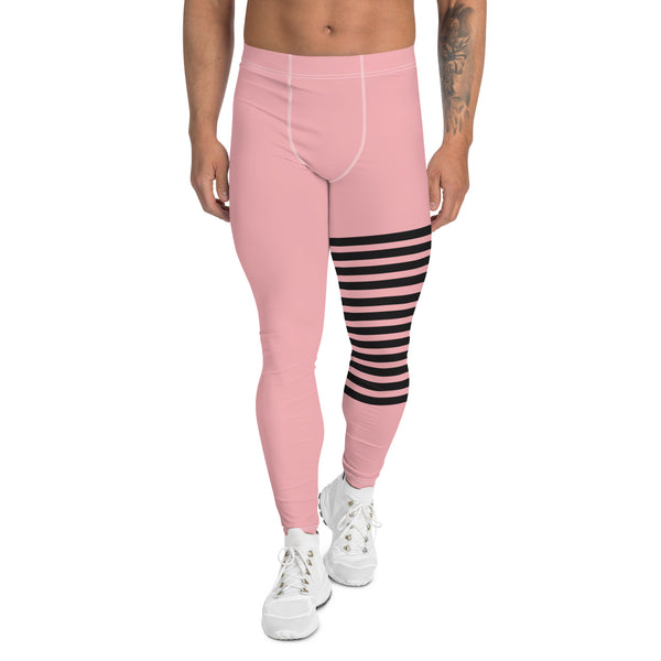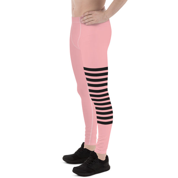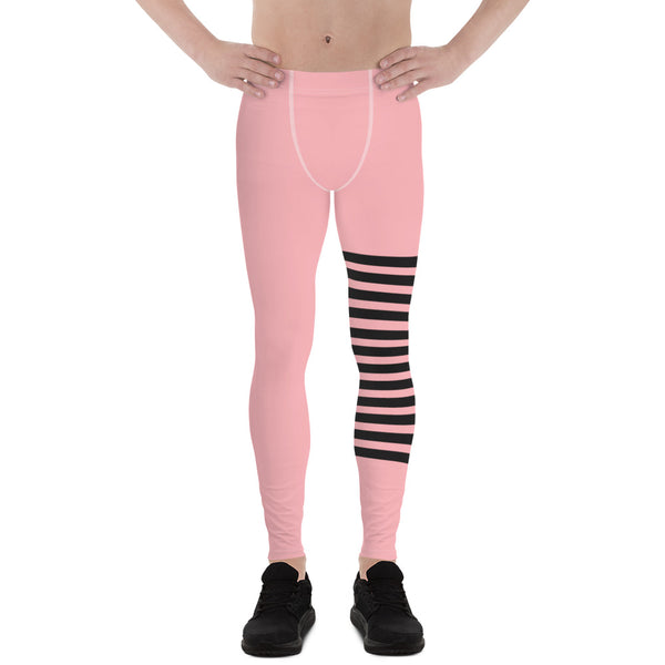 Pastel Pink Striped Meggings, Horizontally Stripes Men's Leggings