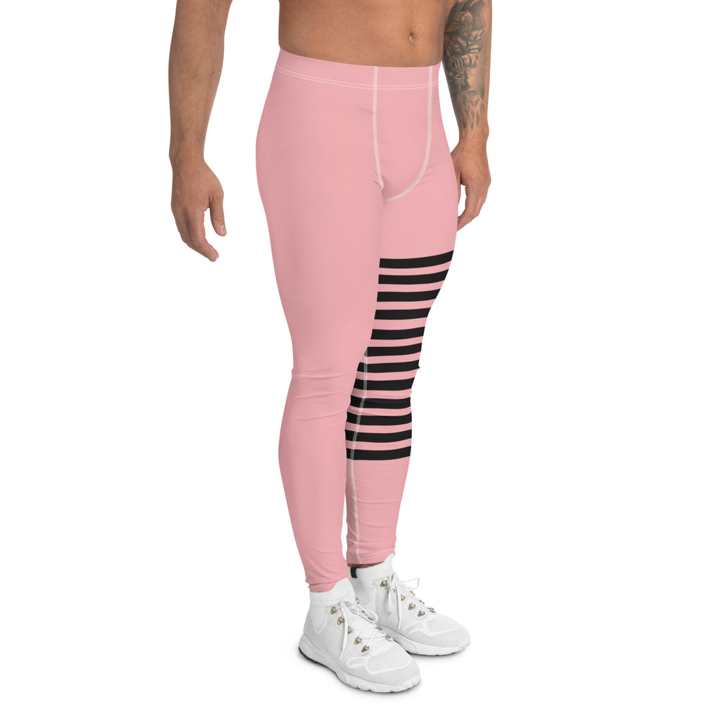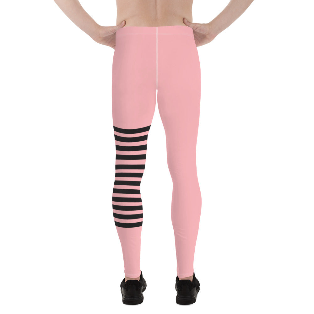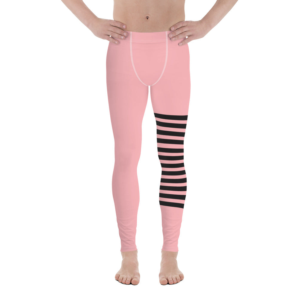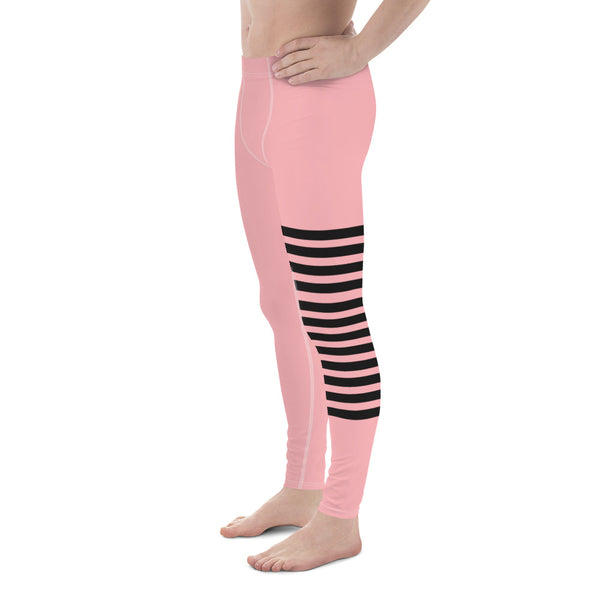 Pastel Pink Striped Meggings, Horizontally Stripes Men's Leggings
