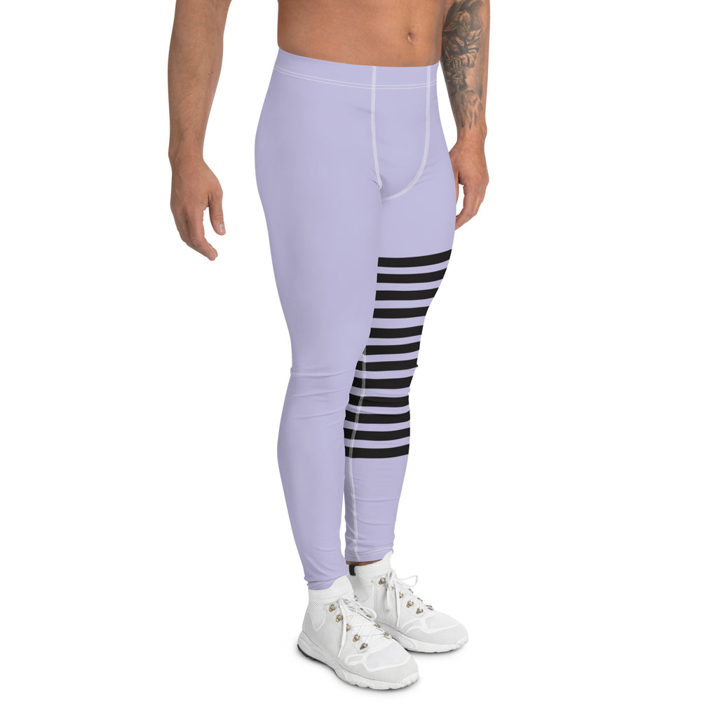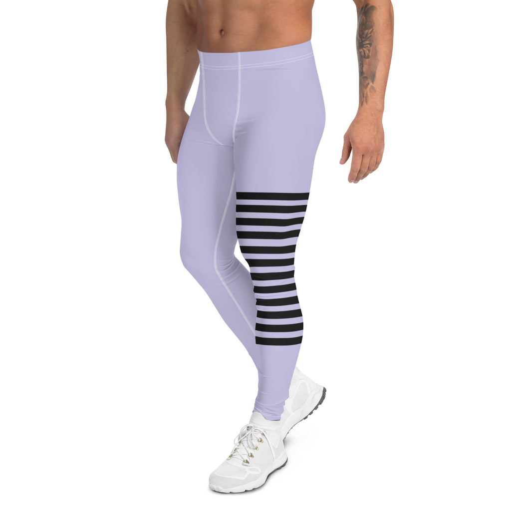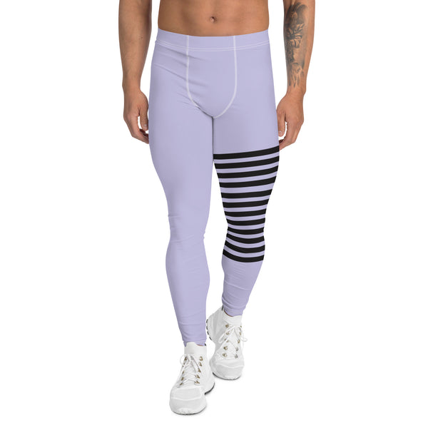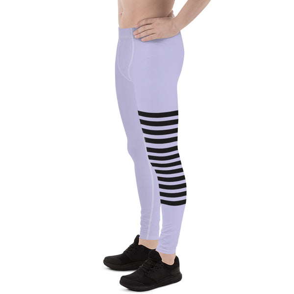 Pastel Purple Striped Meggings, Best Designer Men's Leggings