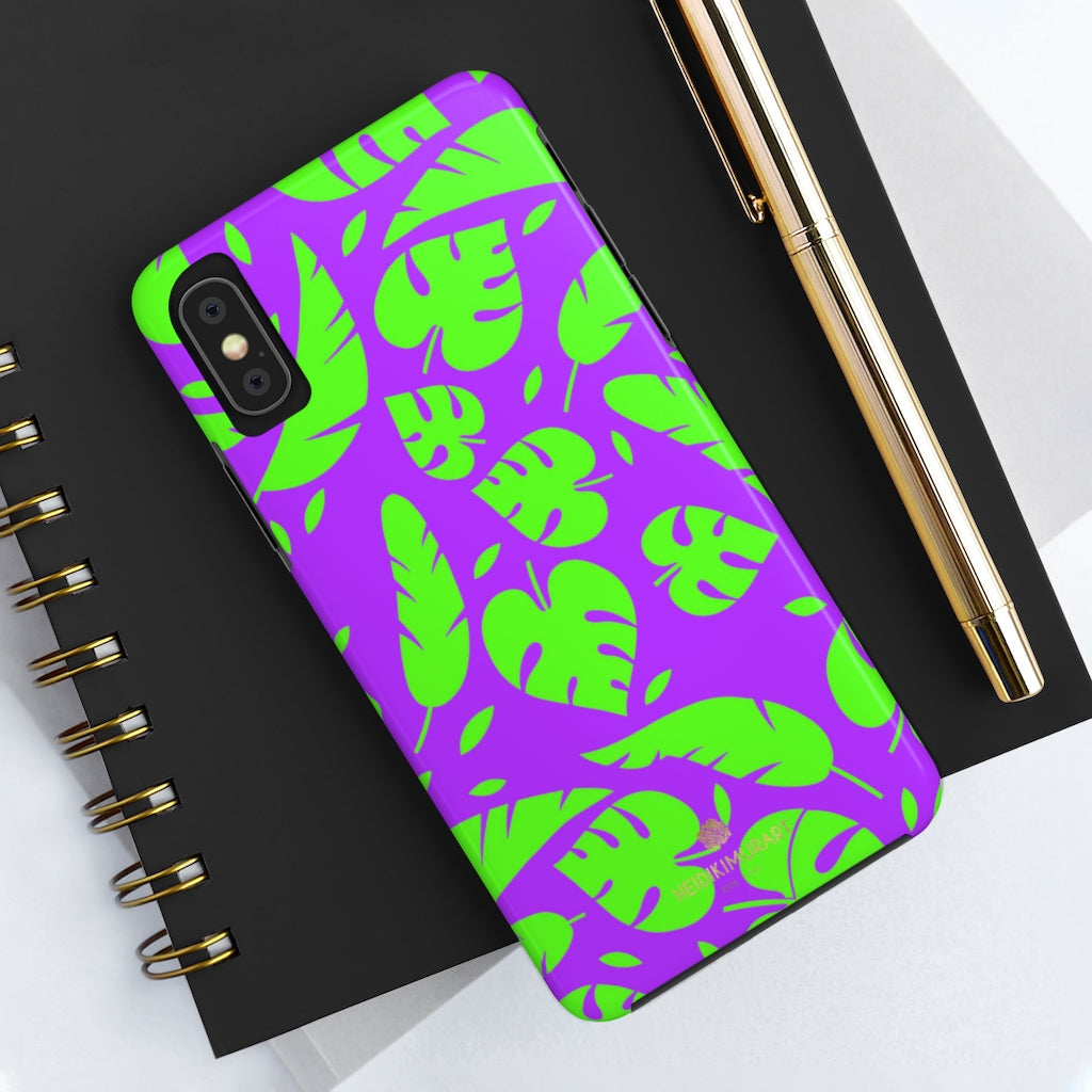 Green Colorful Tropical Leaf Print Designer Case Mate Tough Phone Cases-Made in USA - Heidikimurart Limited