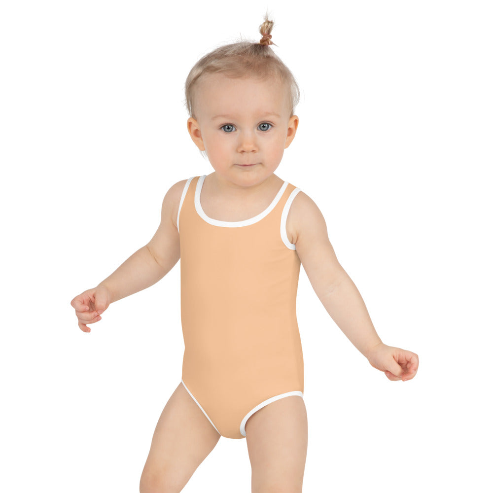Ivory Beige Girl's Swimwear, Solid Color Print Kids Swimsuit-Heidi Kimura Art LLC-Heidi Kimura Art LLC
