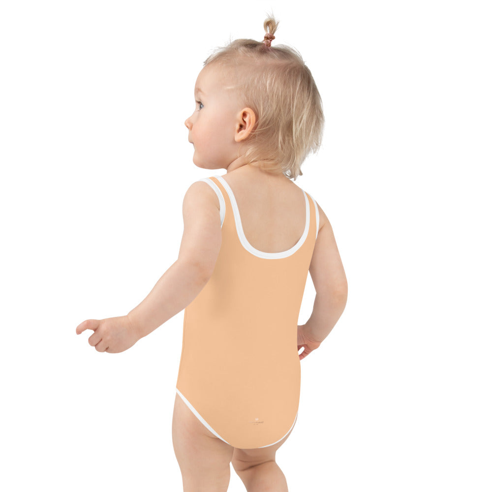 Ivory Beige Girl's Swimwear, Solid Color Print Kids Swimsuit-Heidi Kimura Art LLC-2T-Heidi Kimura Art LLC