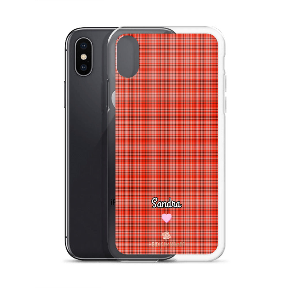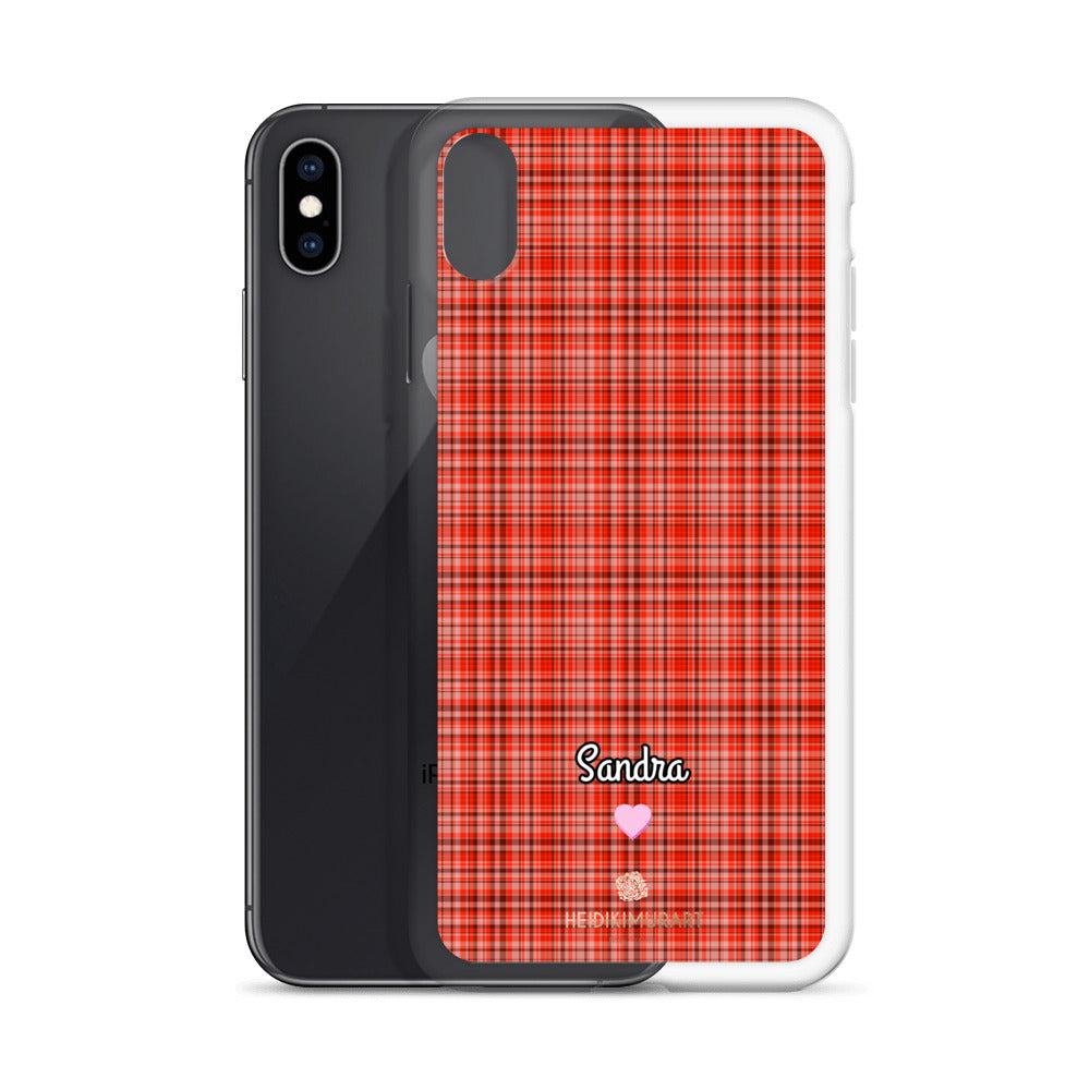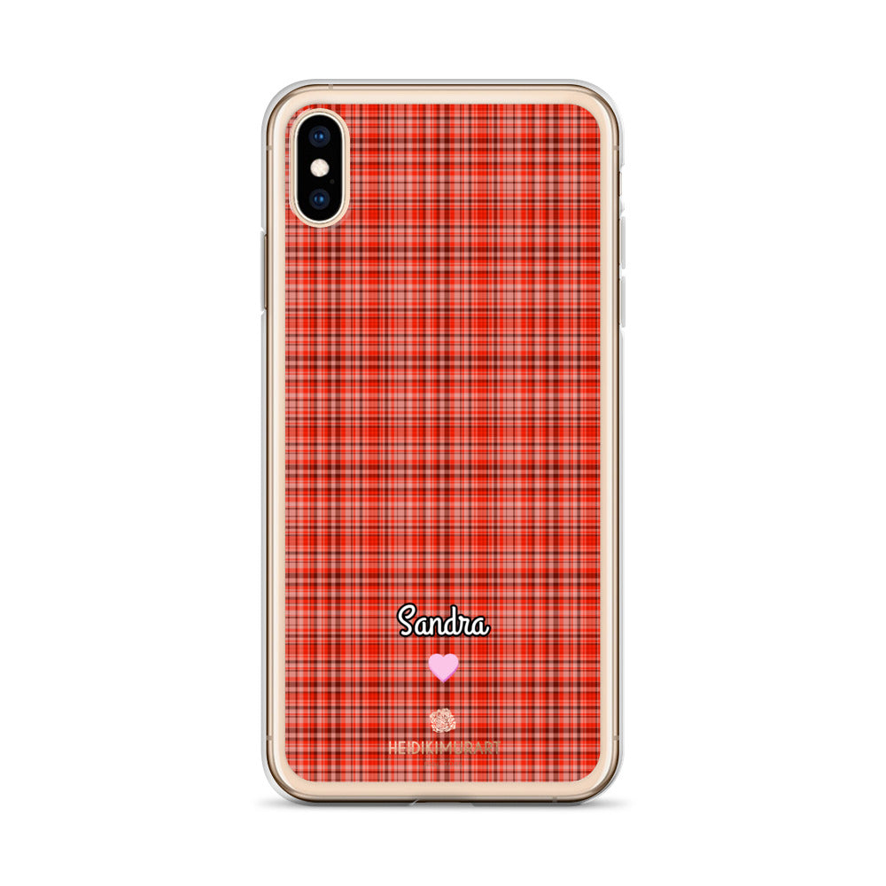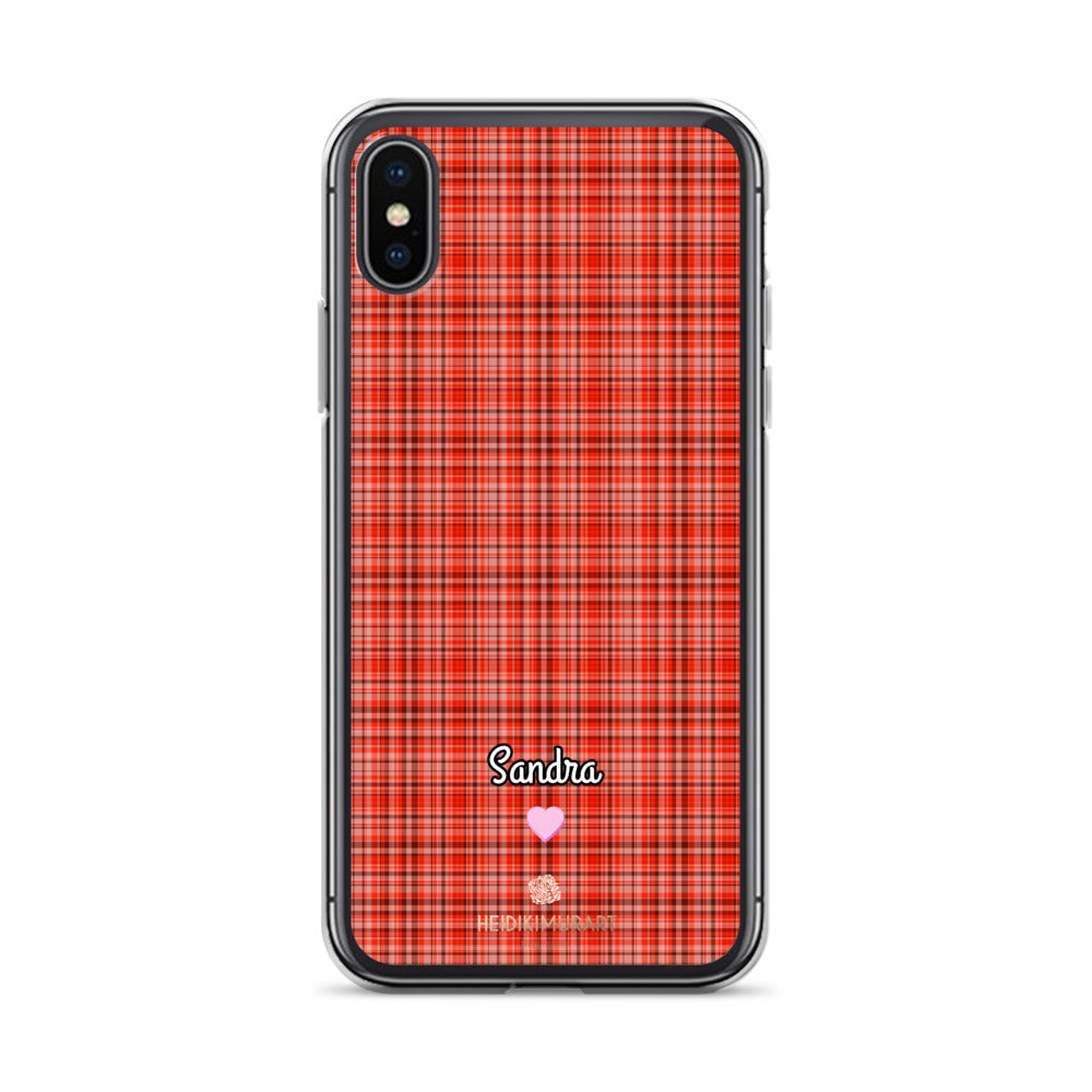 Personalized Red Plaid iPhone Case, Tartan Print Phone Case-Heidi Kimura Art LLC-iPhone XS Max-Heidi Kimura Art LLC