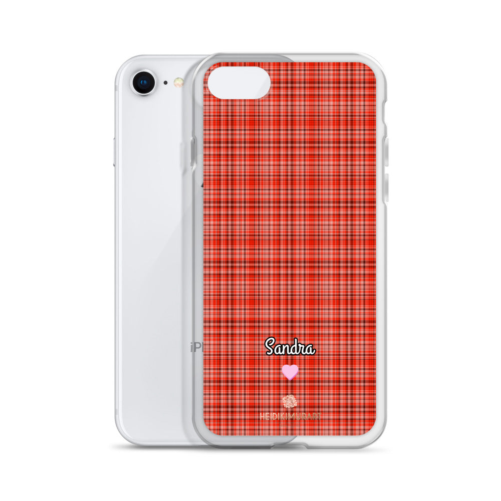 Personalized Red Plaid iPhone Case, Tartan Print Phone Case-Heidi Kimura Art LLC-iPhone SE-Heidi Kimura Art LLC