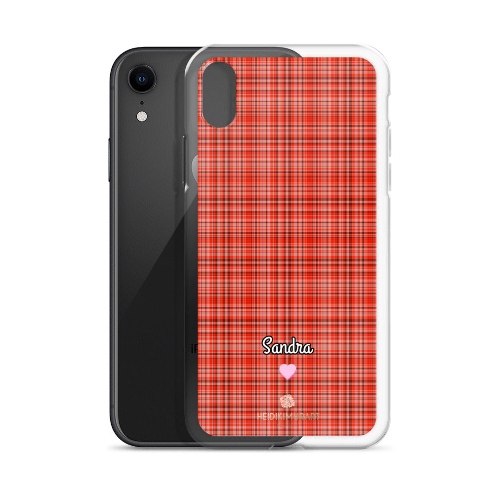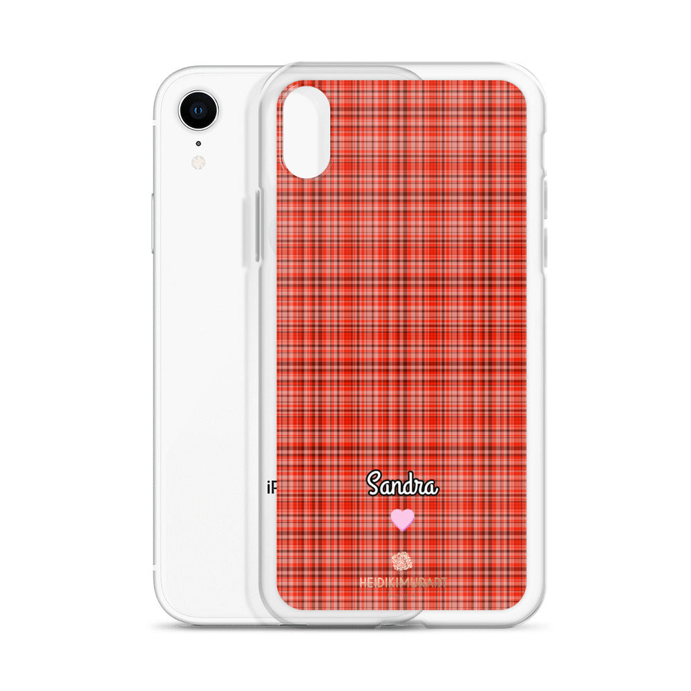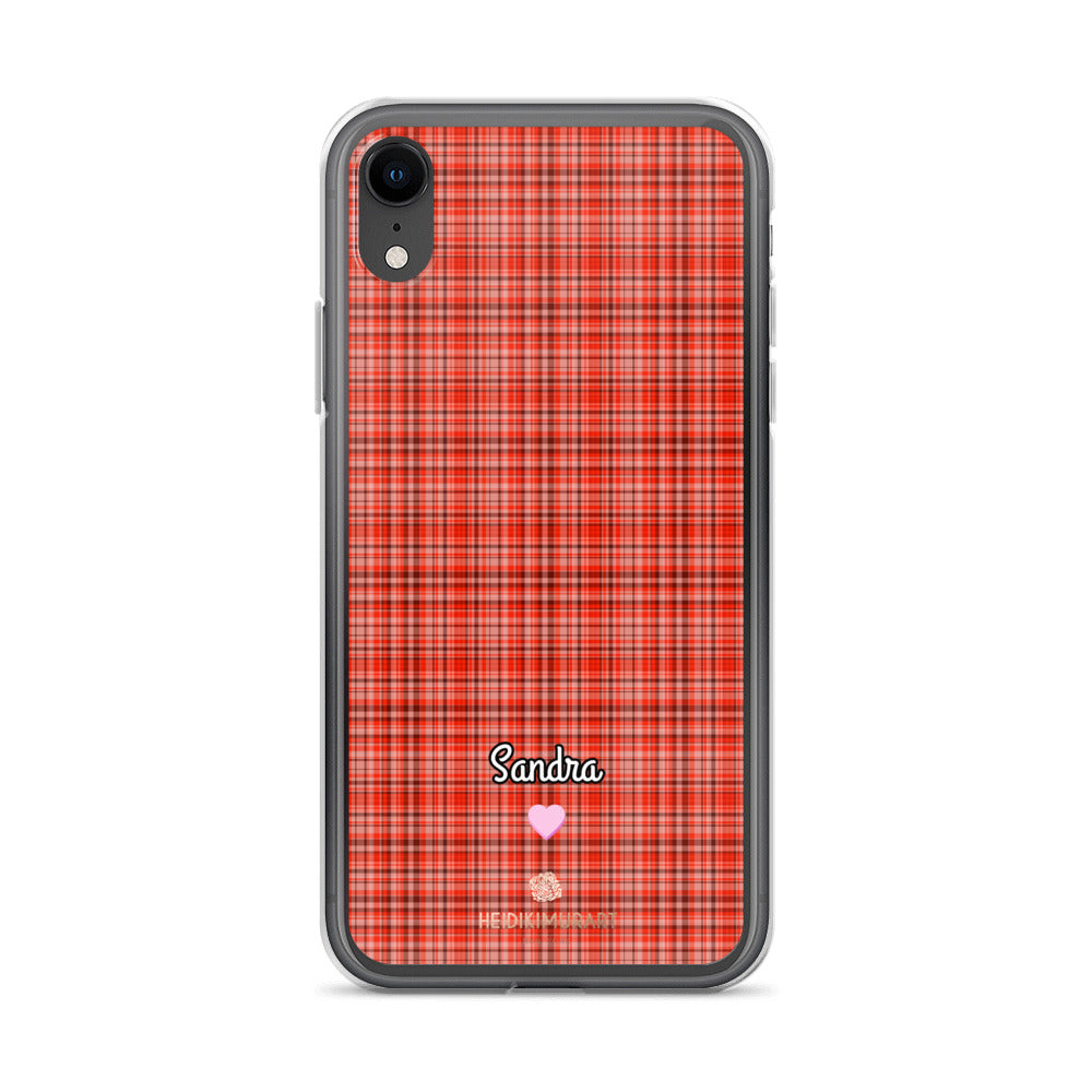 Personalized Red Plaid iPhone Case, Tartan Print Phone Case-Heidi Kimura Art LLC-iPhone XR-Heidi Kimura Art LLC