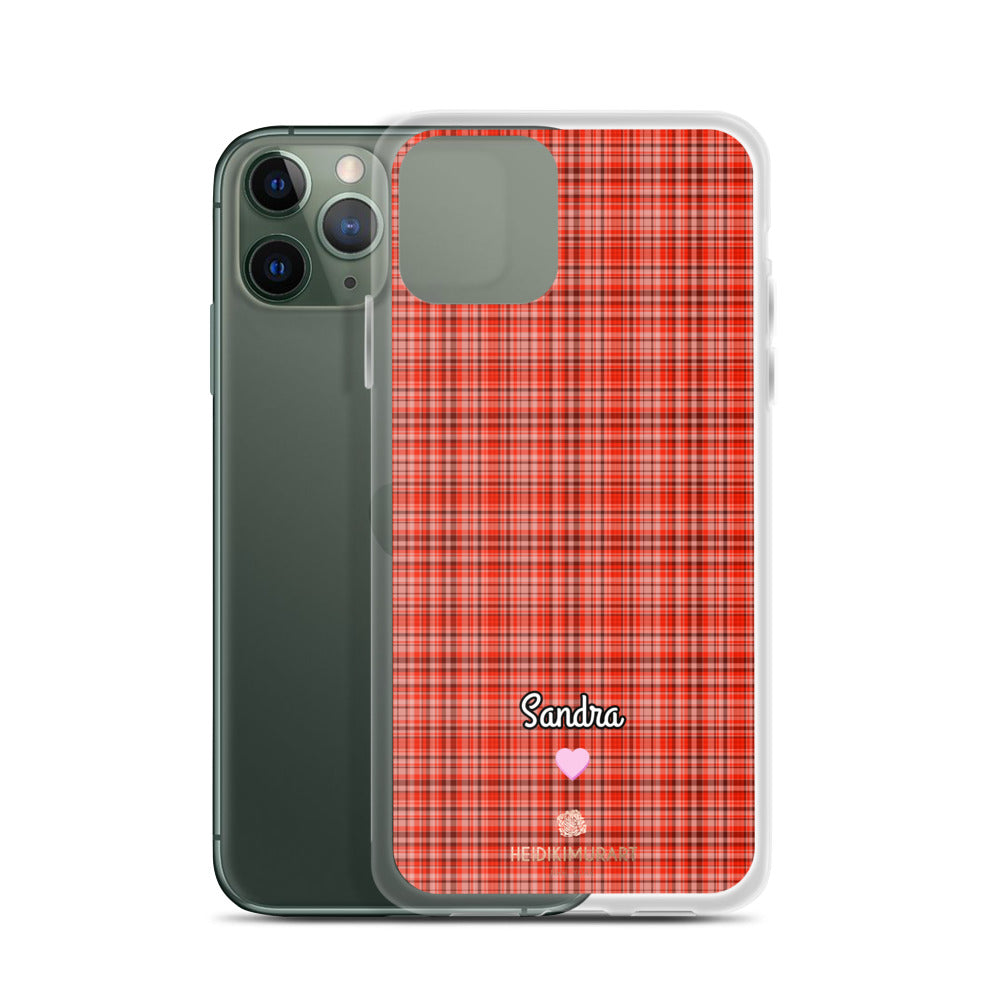 Personalized Red Plaid iPhone Case, Tartan Print Phone Case-Heidi Kimura Art LLC-iPhone 11-Heidi Kimura Art LLC
