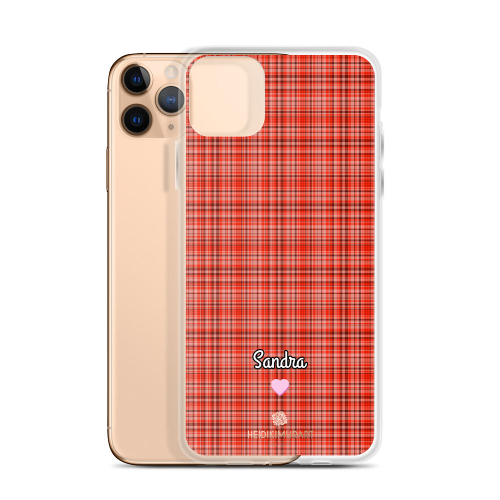 Personalized Red Plaid iPhone Case, Tartan Print Phone Case-Heidi Kimura Art LLC-iPhone 11 Pro Max-Heidi Kimura Art LLC