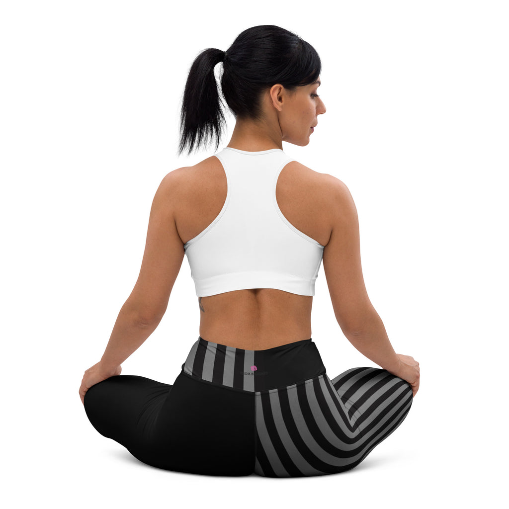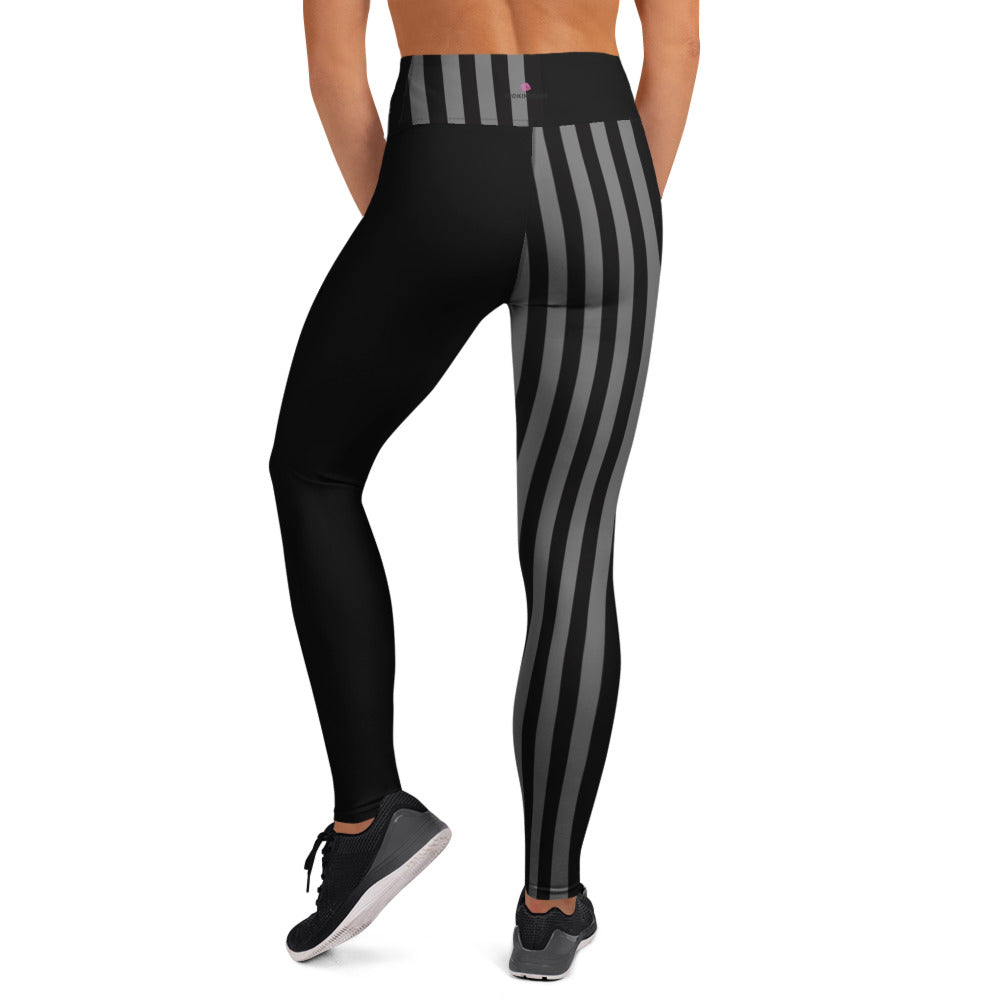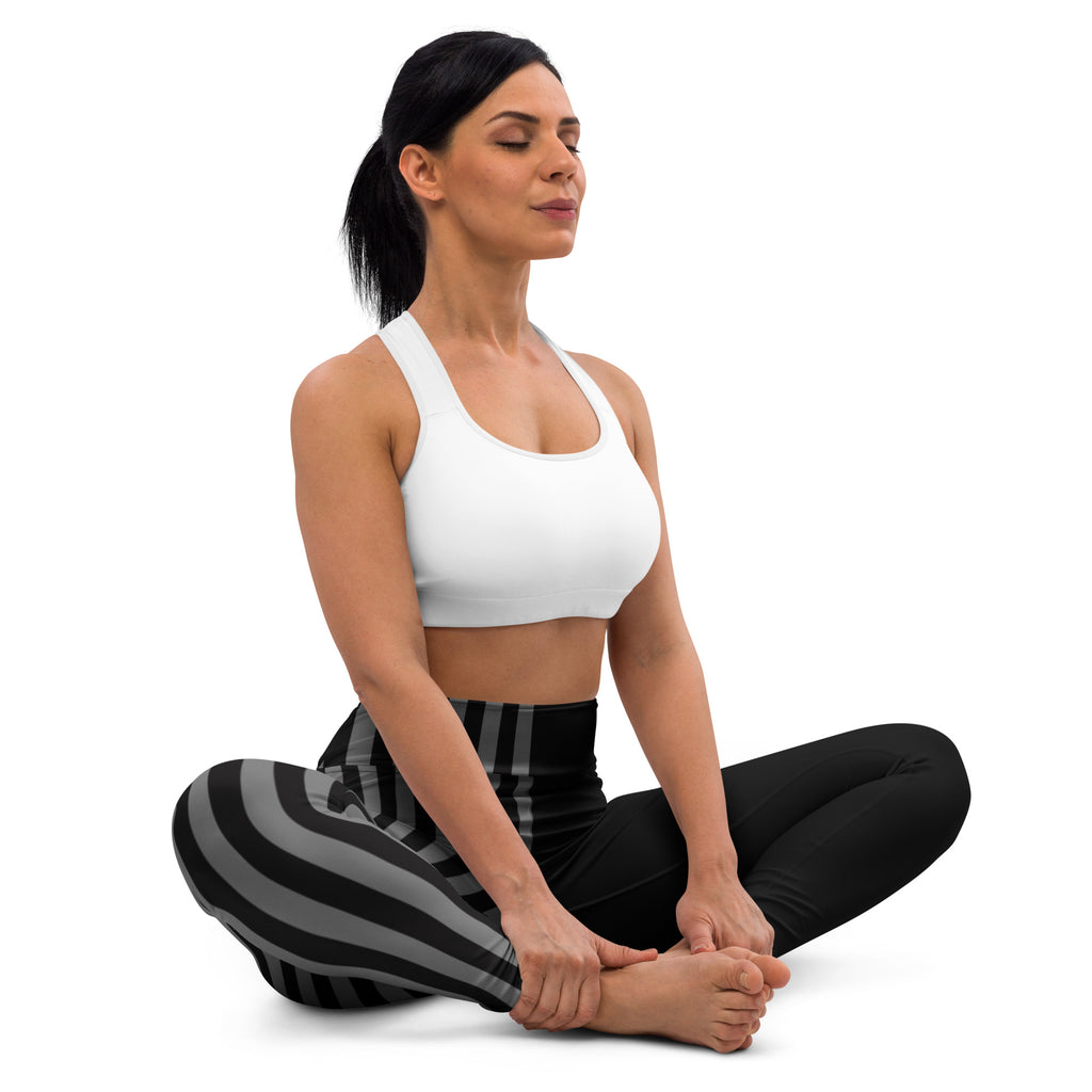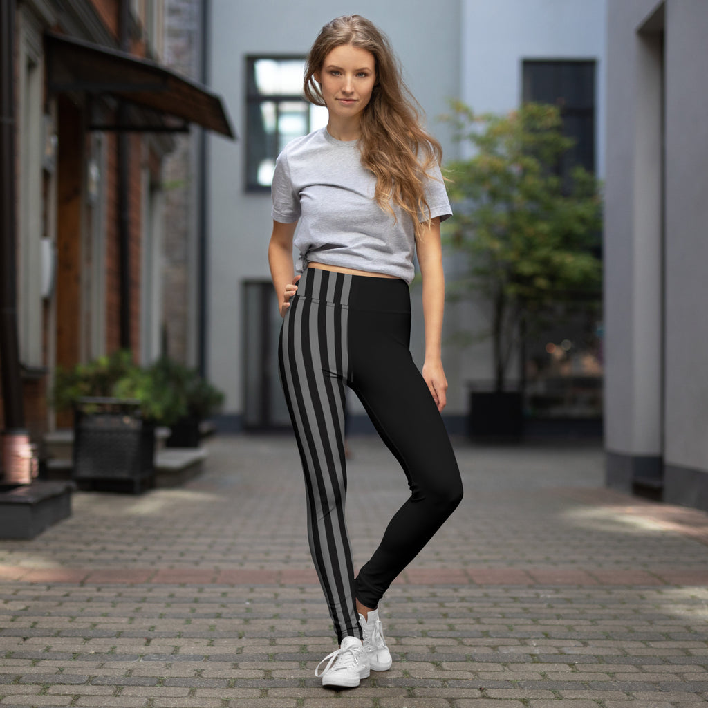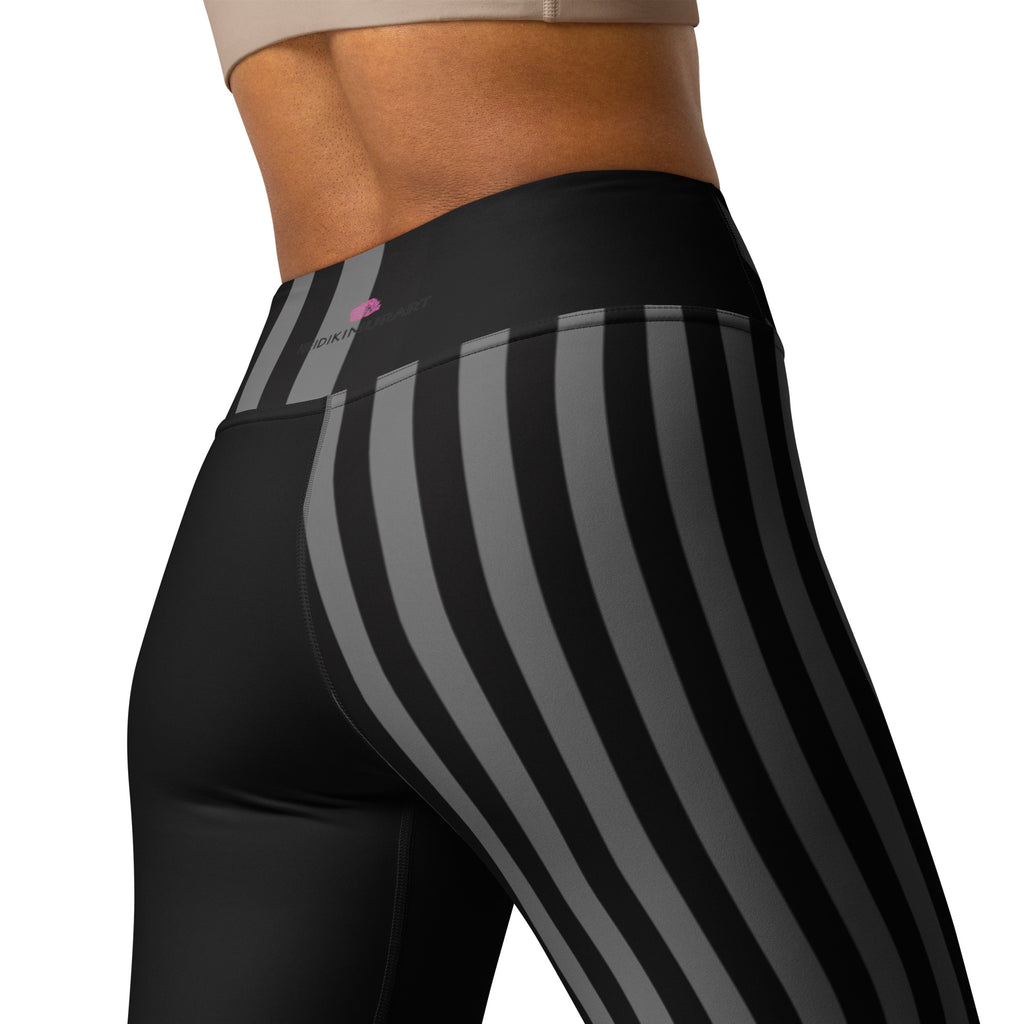 Grey Black Striped Women's Tights, Best Yoga Leggings