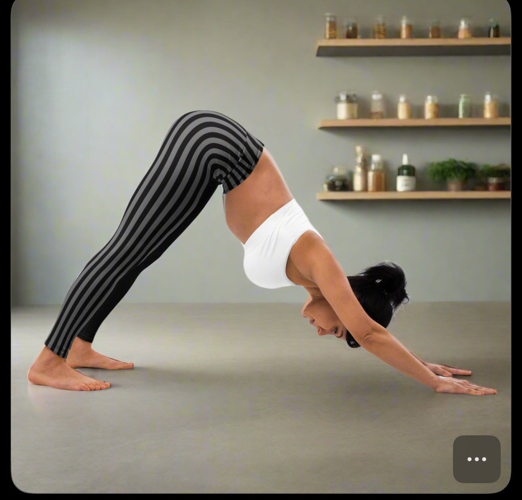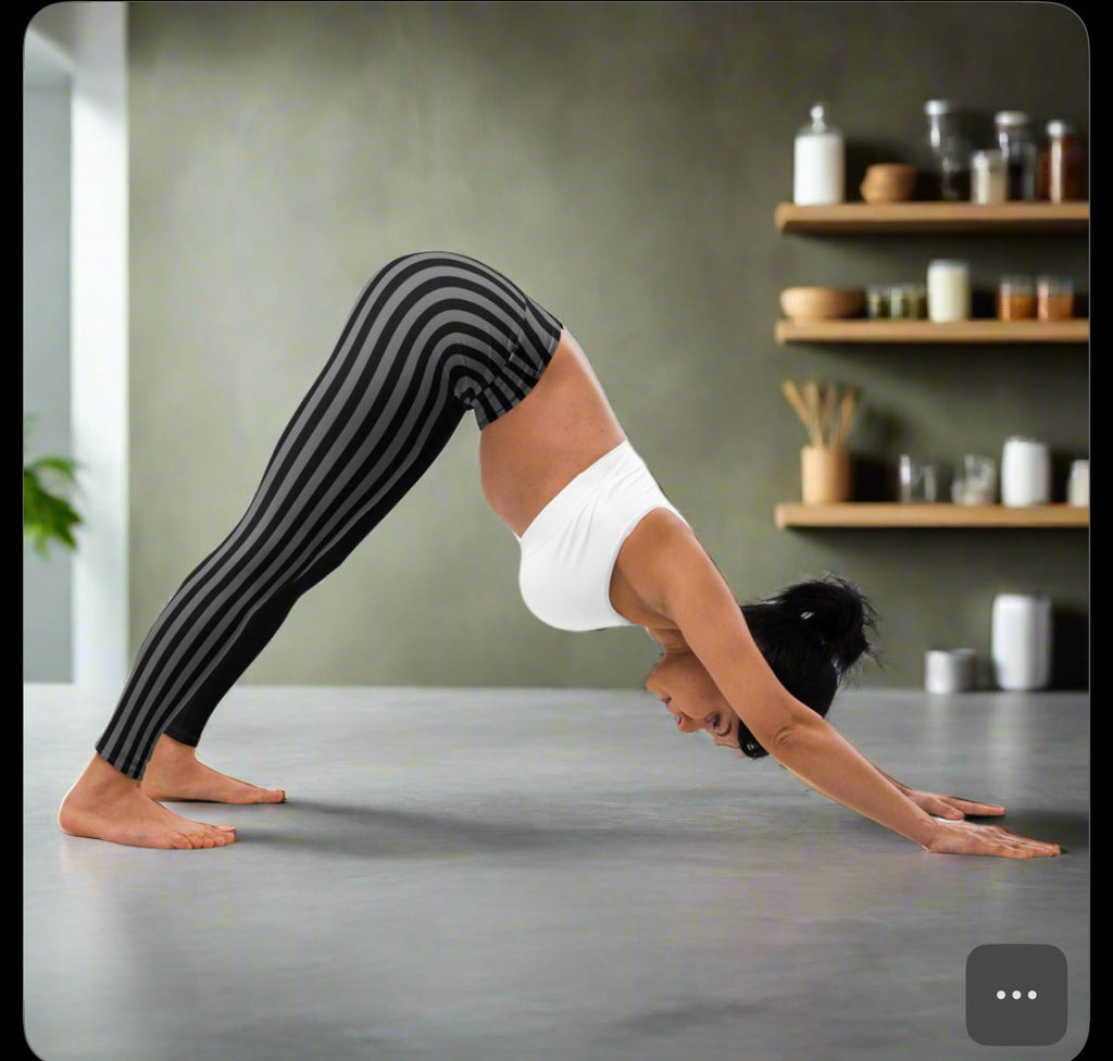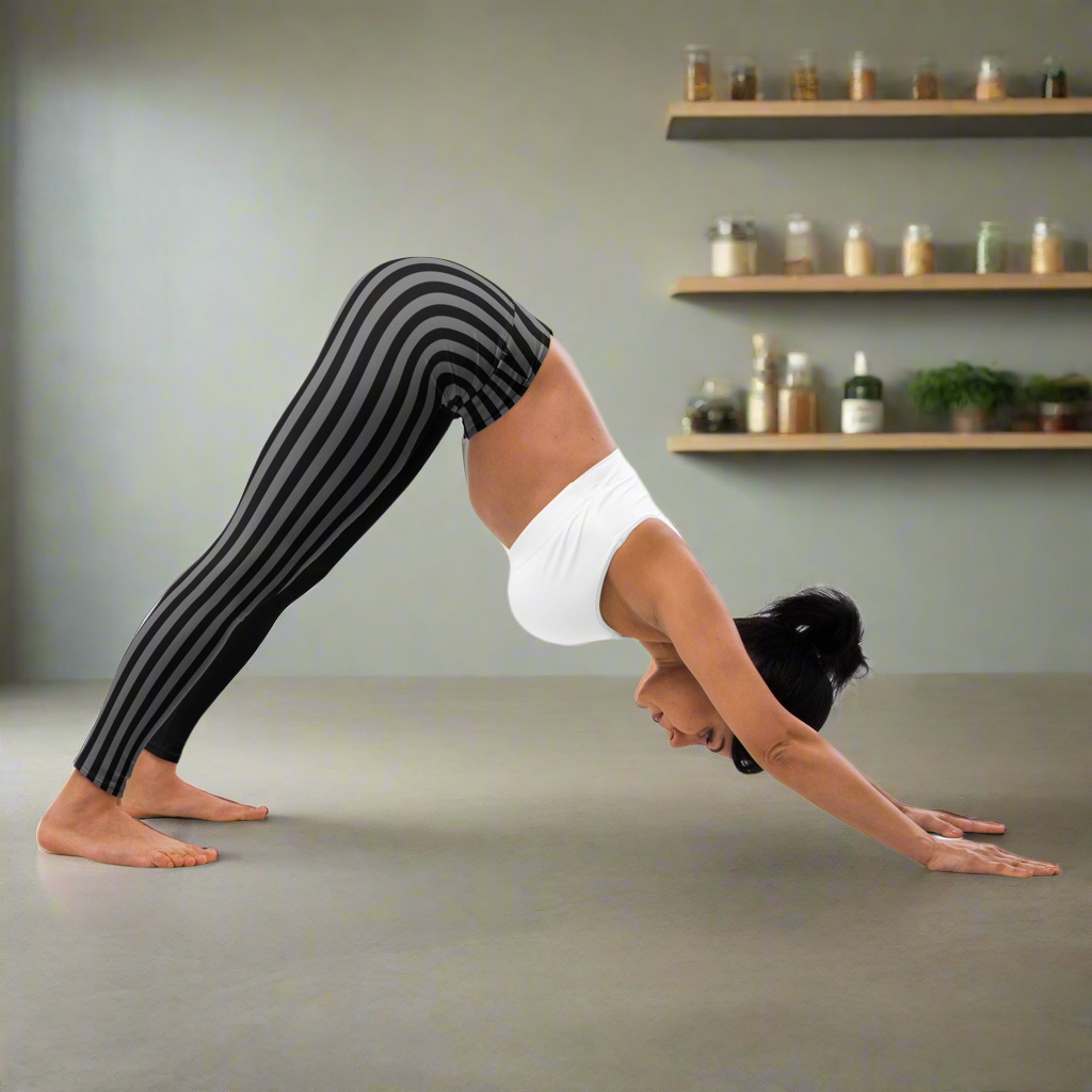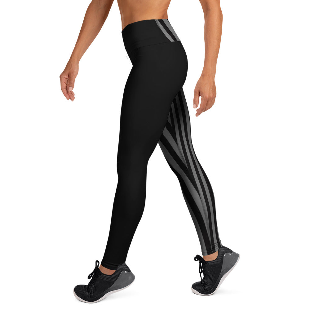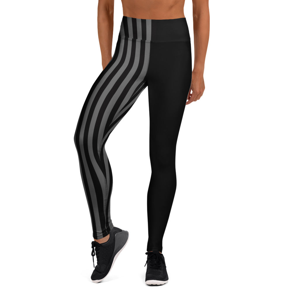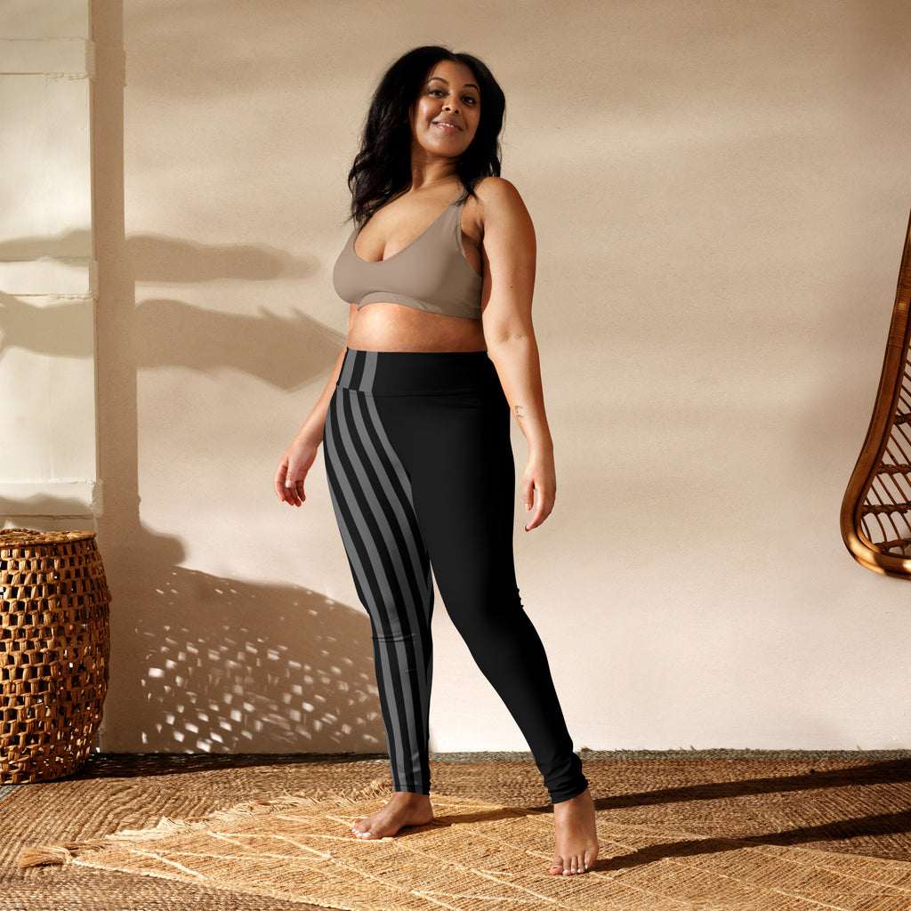 Grey Black Striped Women's Tights, Best Yoga Leggings