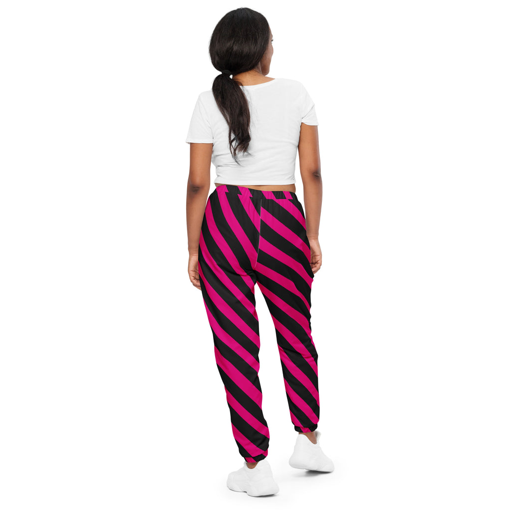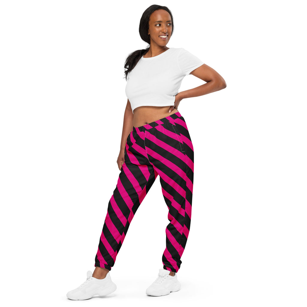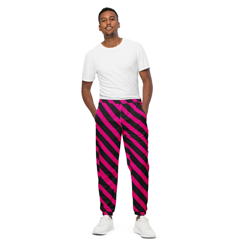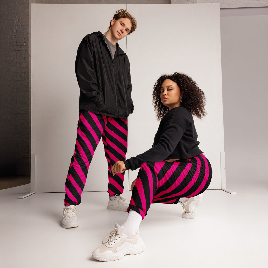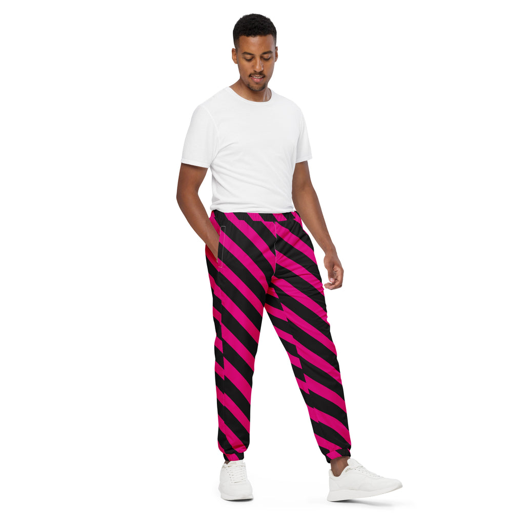 Pink Black Striped Track Pants, Best Unisex Running Athletic Jogger Track Trouser Sweatpants Pants For Men and Women - Made in USA/EU/MX (US Size: XS-3XL)