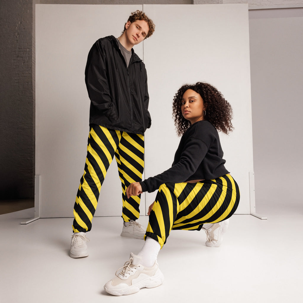 Yellow Black Striped Track Pants, Best Unisex Running Athletic Jogger Track Trouser Sweatpants Pants For Men and Women - Made in USA/EU/MX (US Size: XS-3XL)