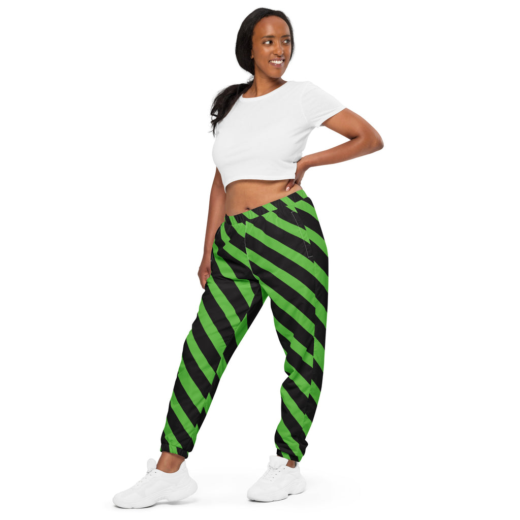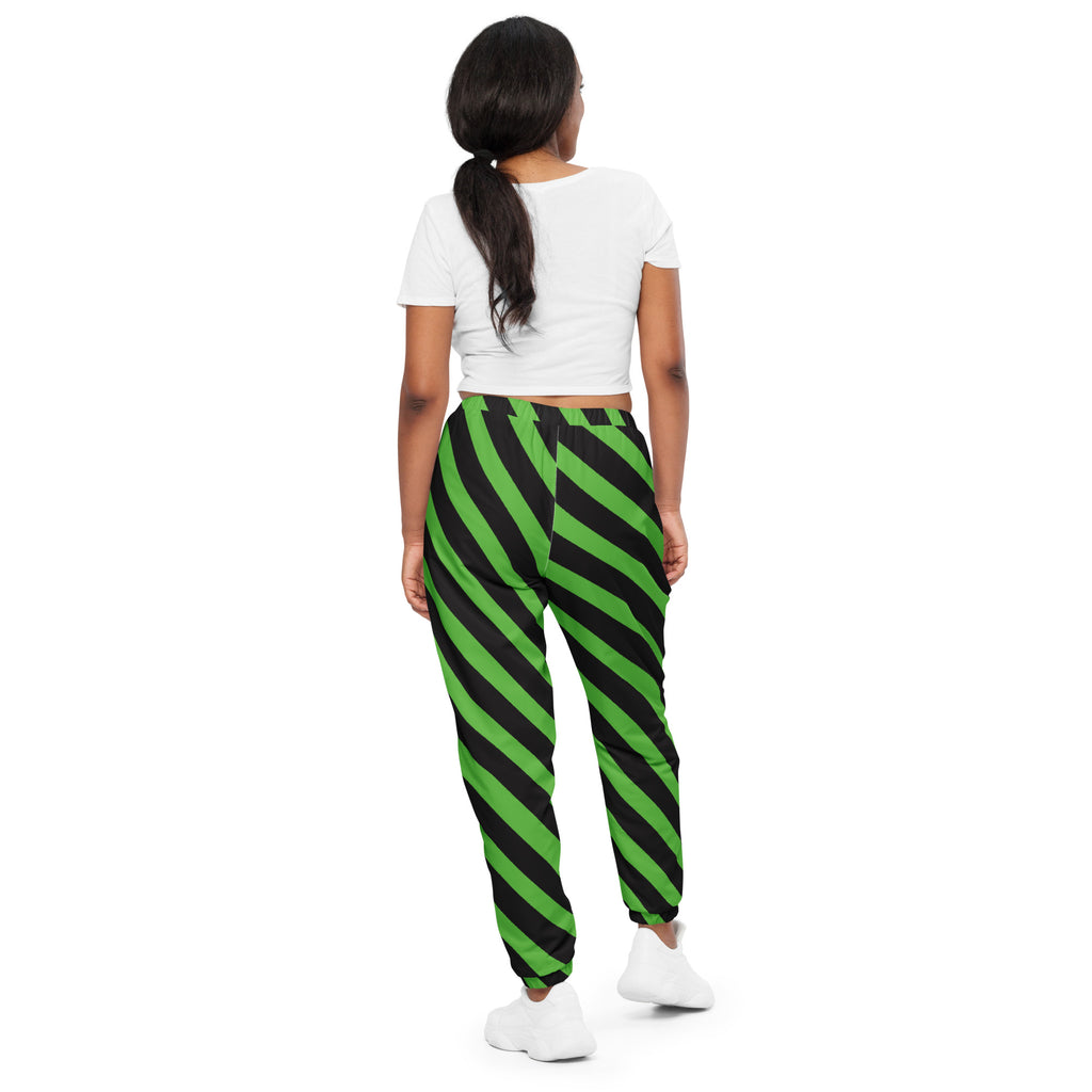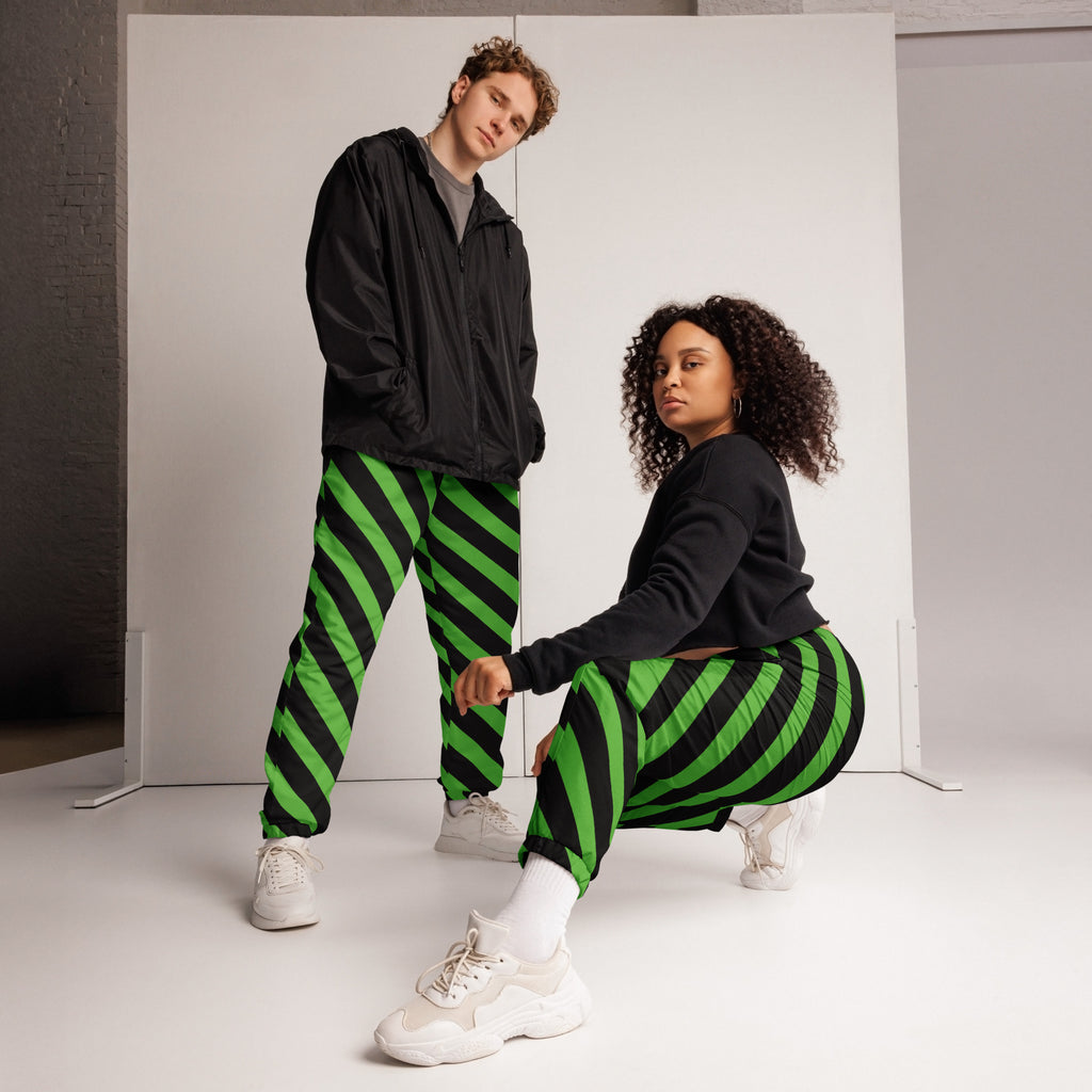 Green Black Striped Track Pants, Best Unisex Running Athletic Jogger Track Trouser Sweatpants Pants For Men and Women - Made in USA/EU/MX (US Size: XS-3XL)