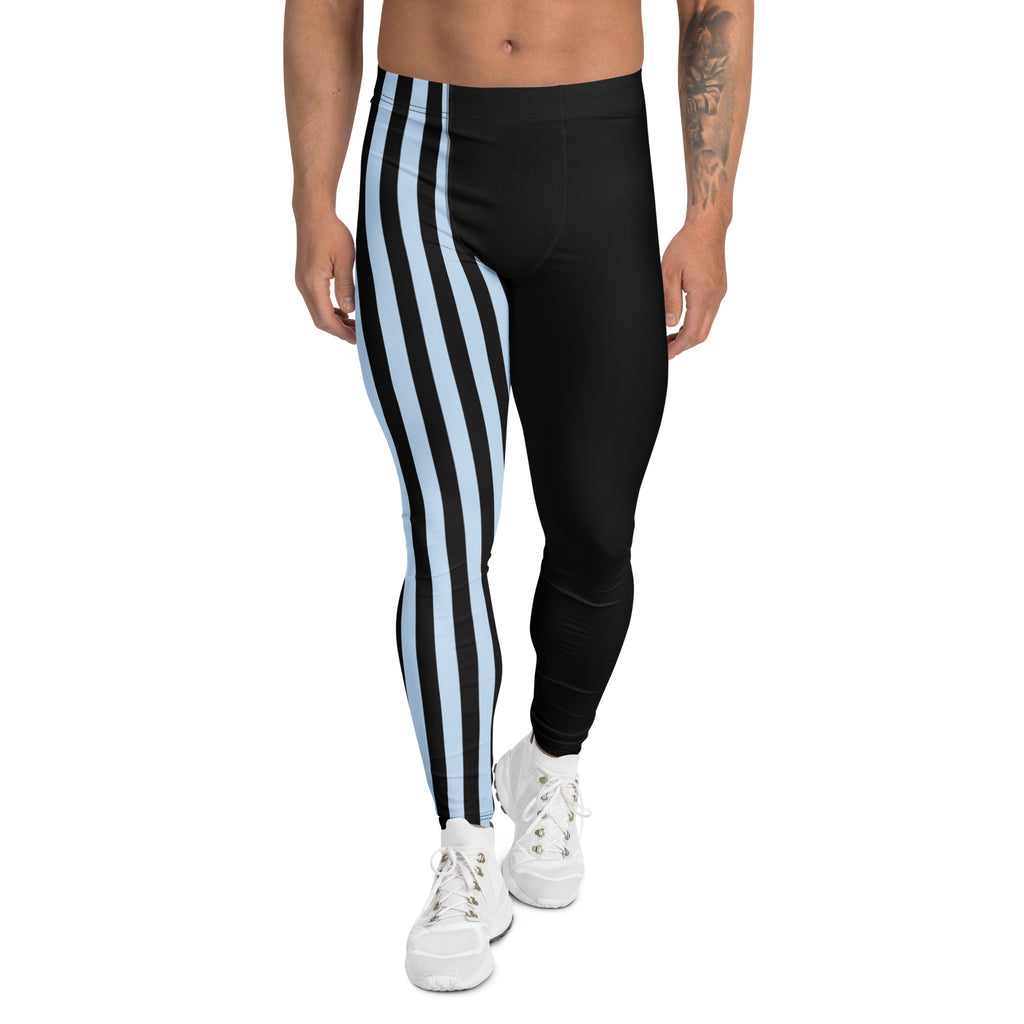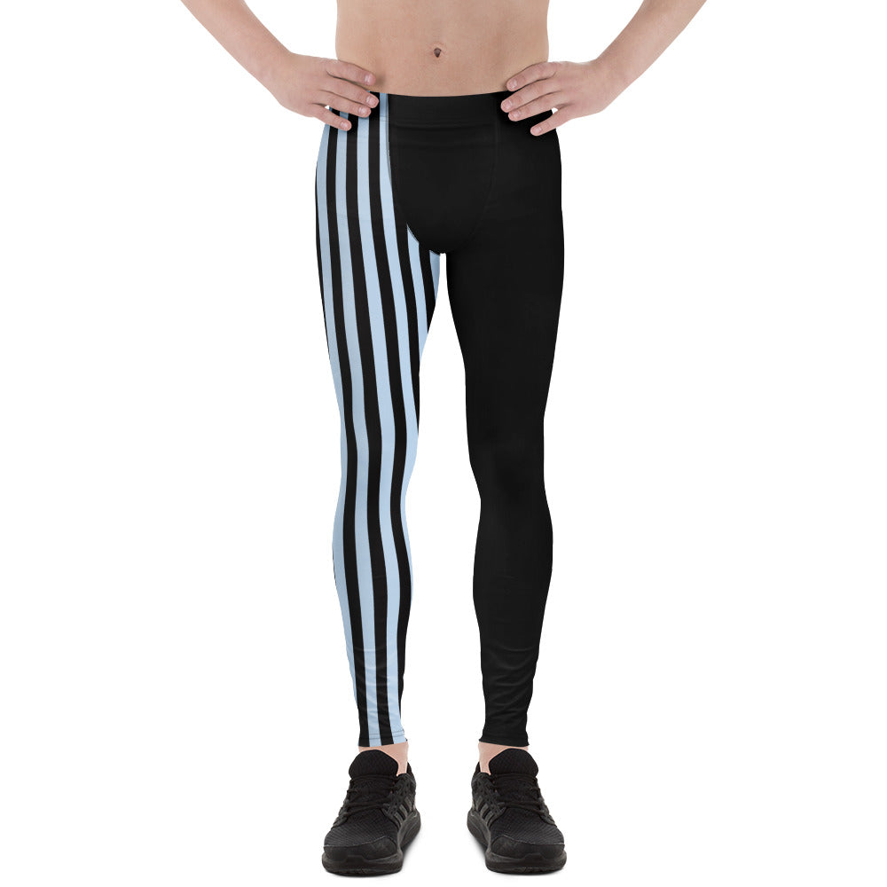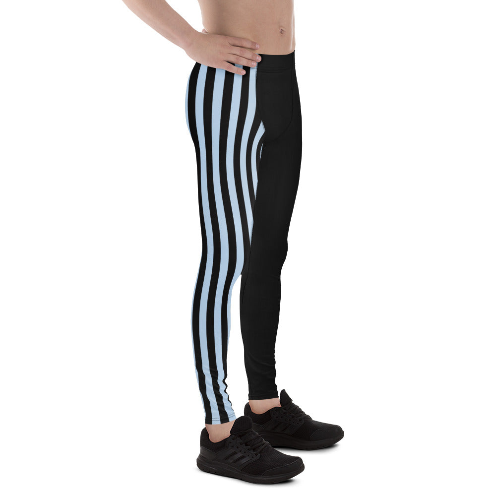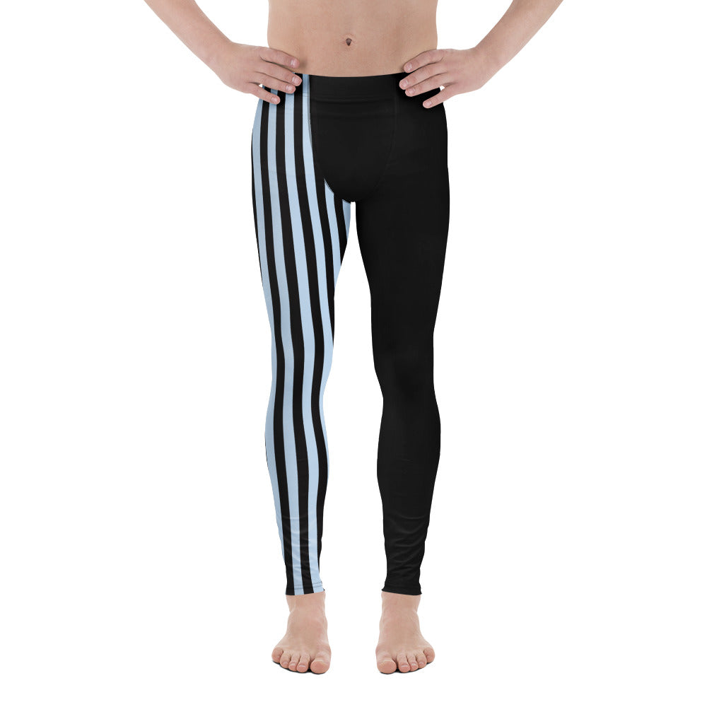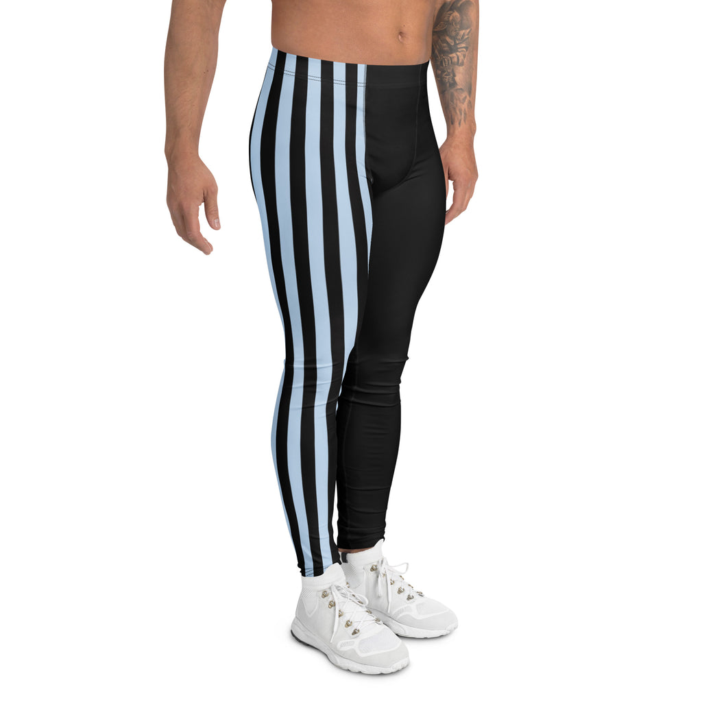 Pastel Blue Black Striped Meggings, Best Men's Leggings