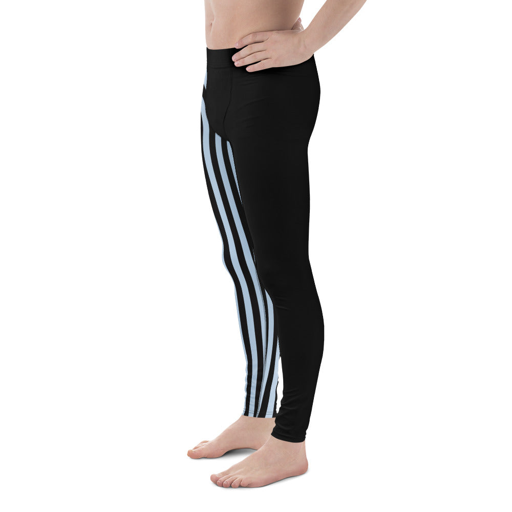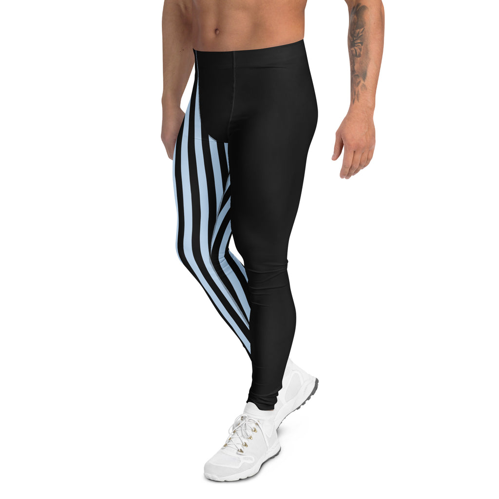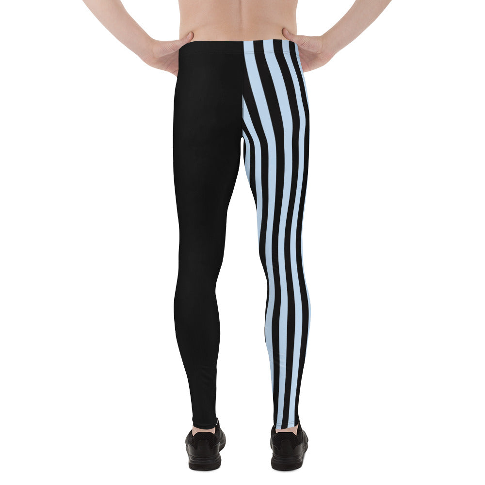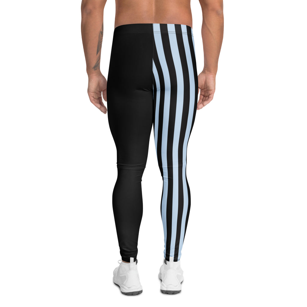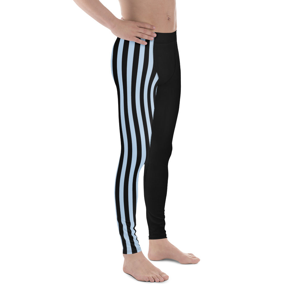 Pastel Blue Black Striped Meggings, Best Men's Leggings