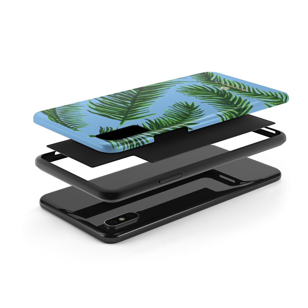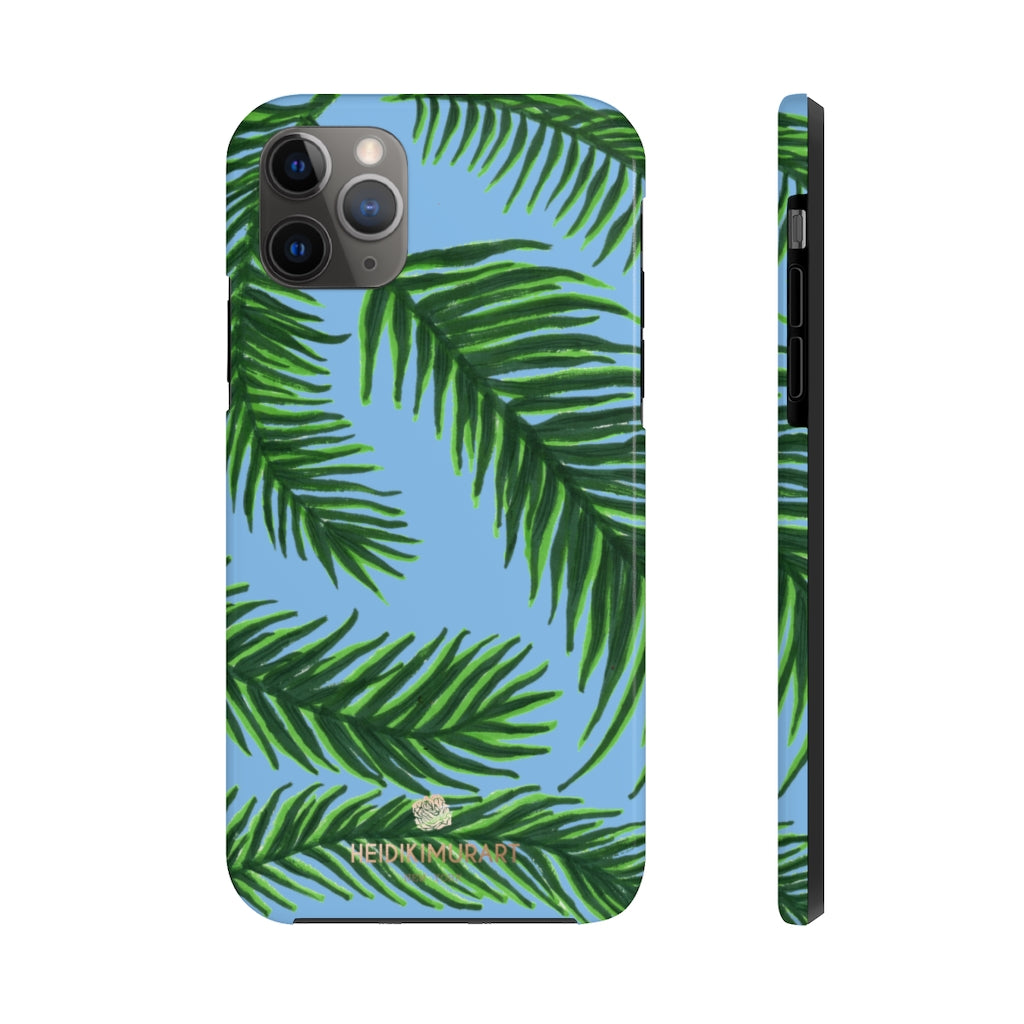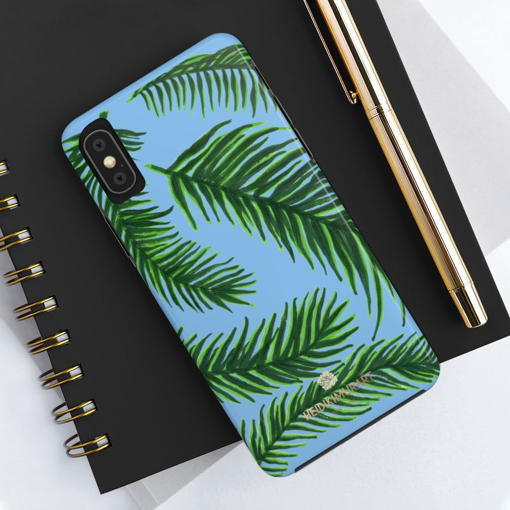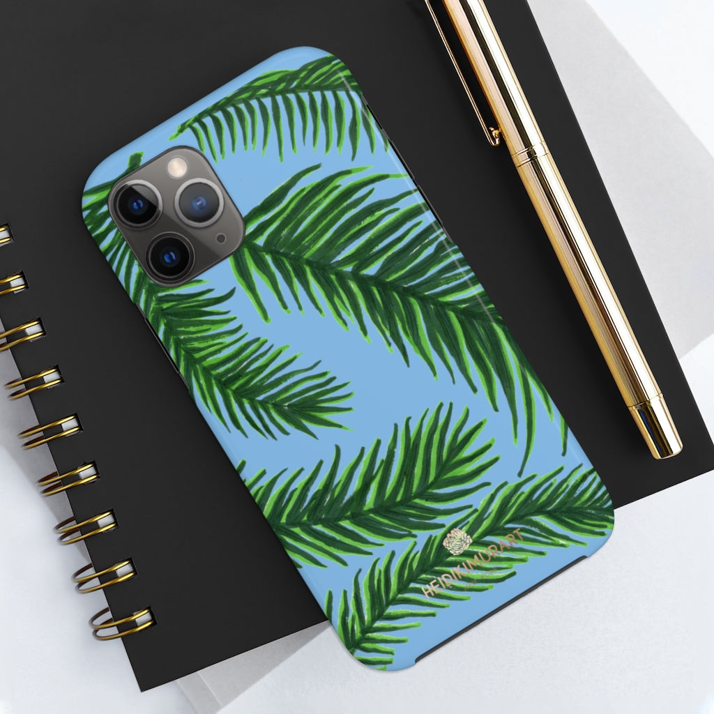 Pastel Blue Tropical Print Phone Case, Palm Leaf Case Mate Tough Phone Cases-Made in USA - Heidikimurart Limited