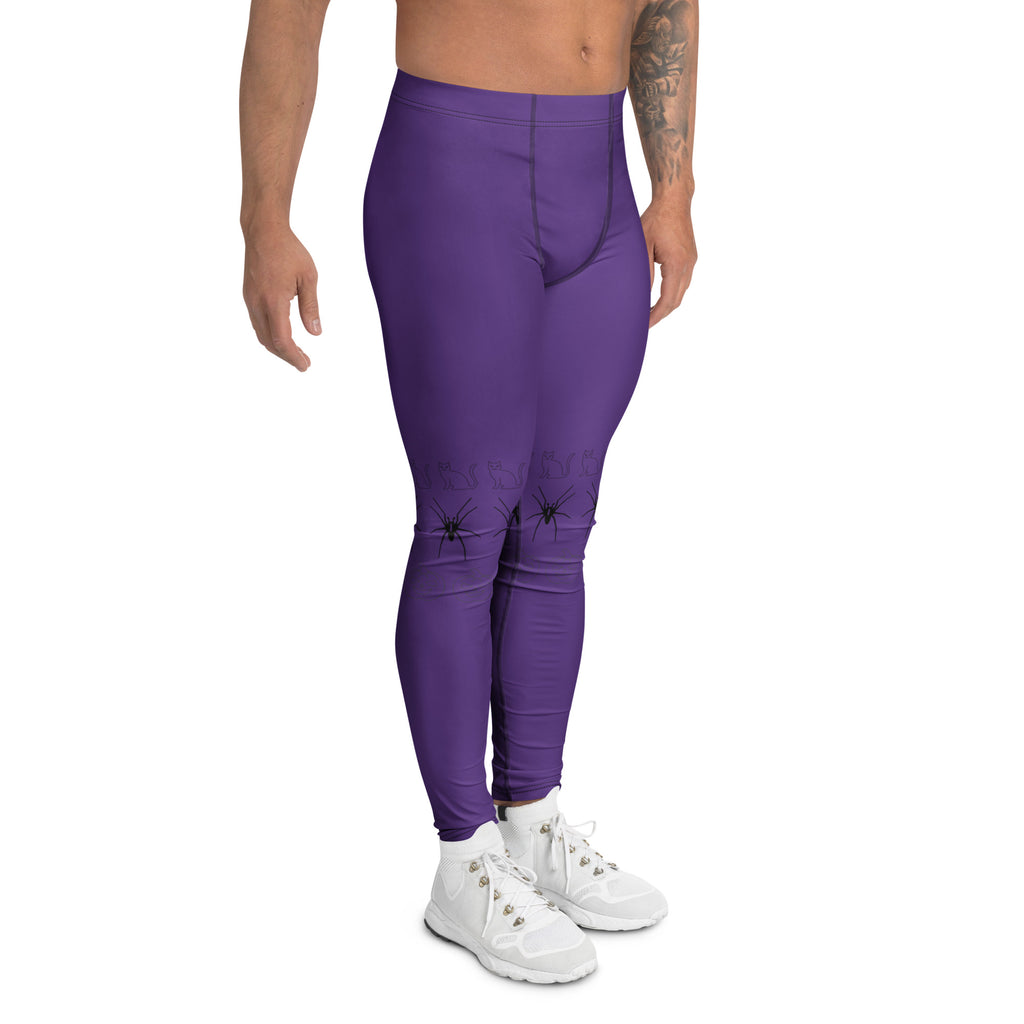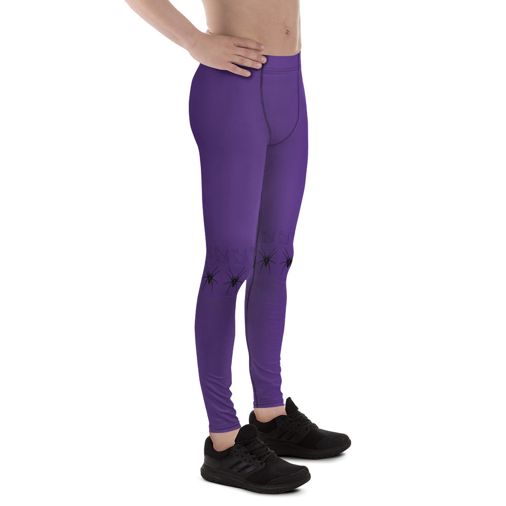 Purple Halloween Meggings, Pumpkin Cats Spiders Men's Leggings