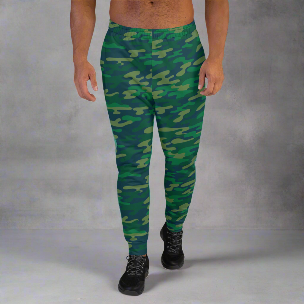 Dark Green Camo Men's Joggers, Camouflage Joggers Mens Camo Joggers-Made in USA/EU/MX