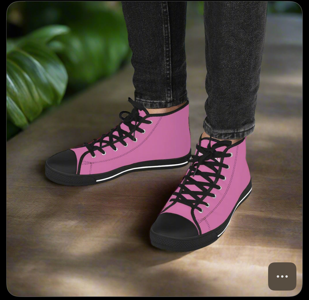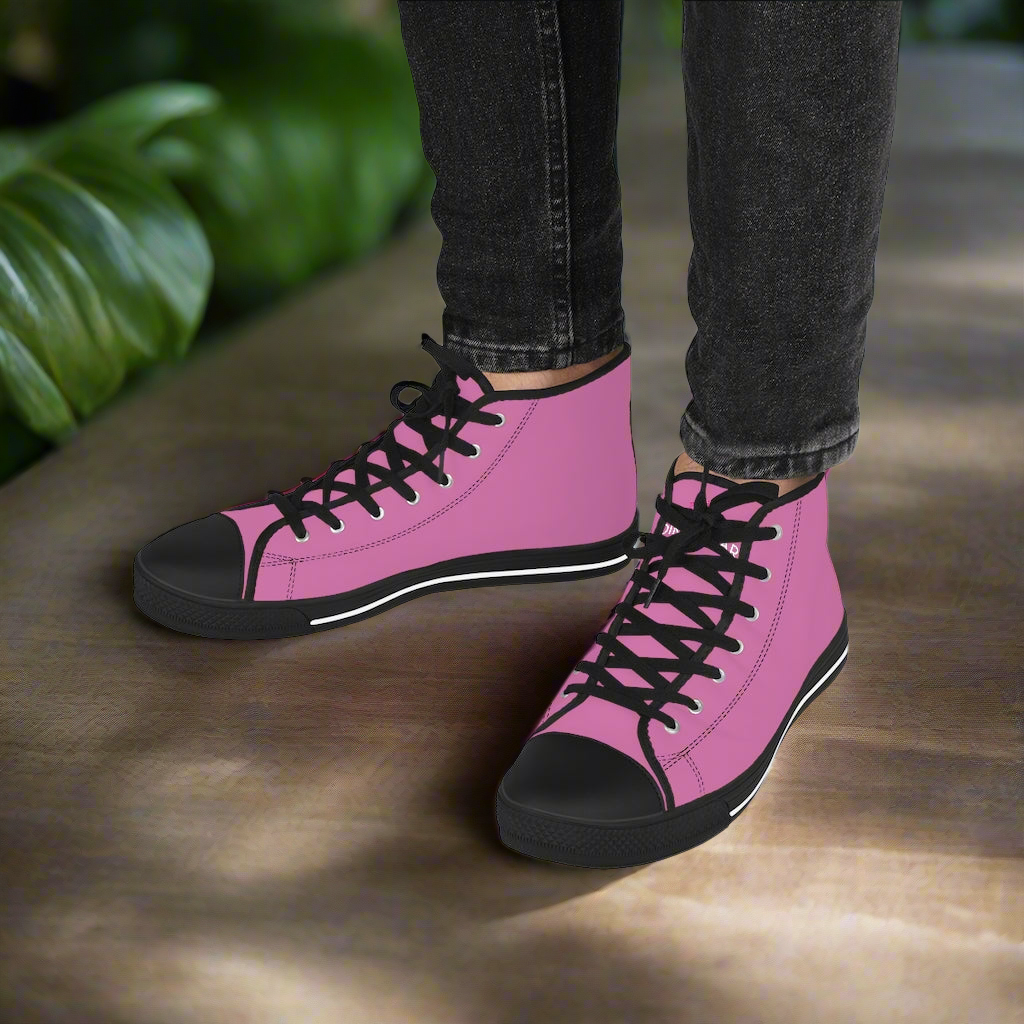 Pink Solid Color Men's Sneakers, Best Pink Canvas High Tops, Modern Minimalist Best Men's High Top Sneakers